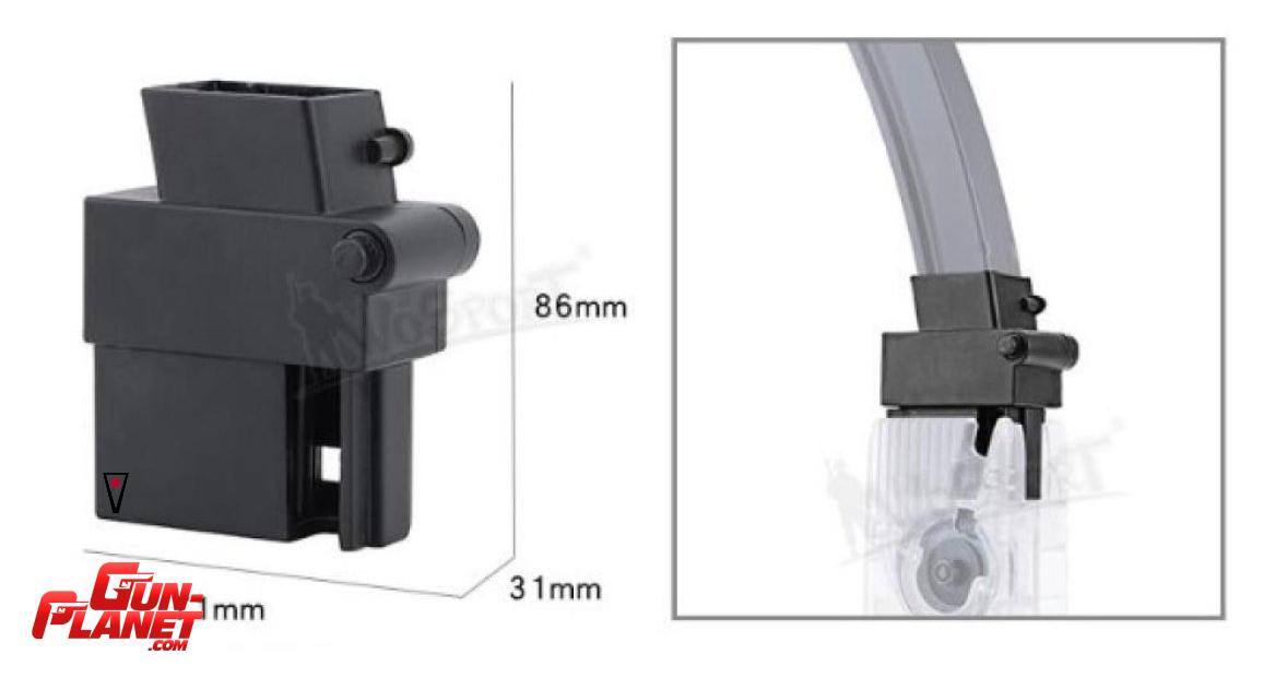 Adaptador para cargador de bbs 6mm 1000R / M4 a MP5 Envíos por Andreani a cargo del comprador (CBA - Cap) / Retiros: CBA Cap.