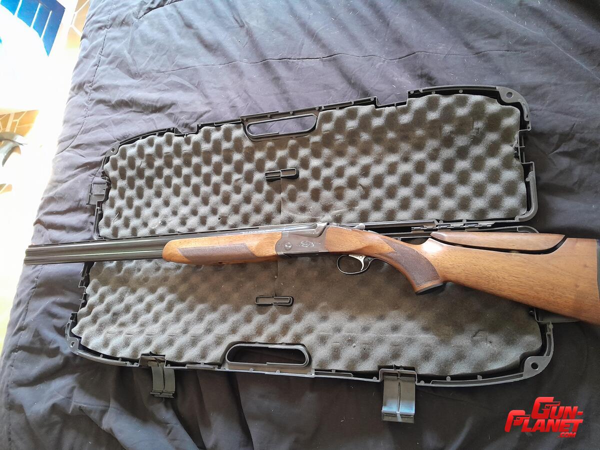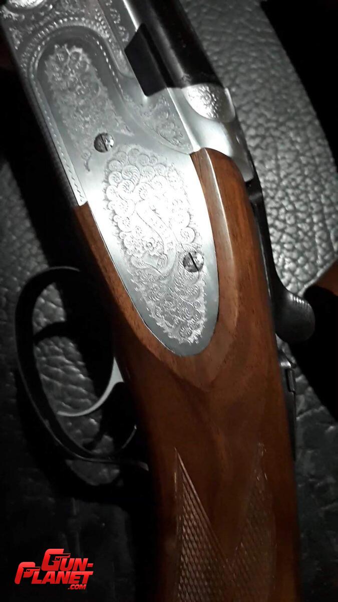 Beretta 686 EL, Cal 12,70, 67 cm de caños, 1/4 y 3/4 fija, 18,3 y 18,4, banda de 6 mm, 3,250 kg de peso. Pura sangre de caza. Estado del arma inmaculado. Va con dos culatas, la original y otra también original zurda.