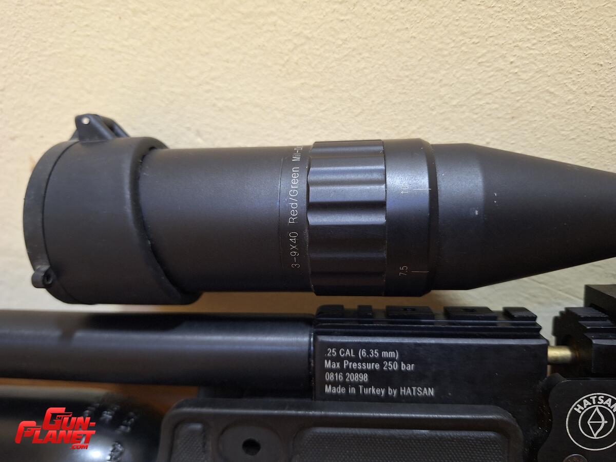 Vendo Rifle PCP Hatsan, modelo Hércules calibre 6.36, dos depósitos de 500 cc, dos cargadores de 15 disparo, funda, mira UTG 3 x 9 x 40 retículo iluminado.