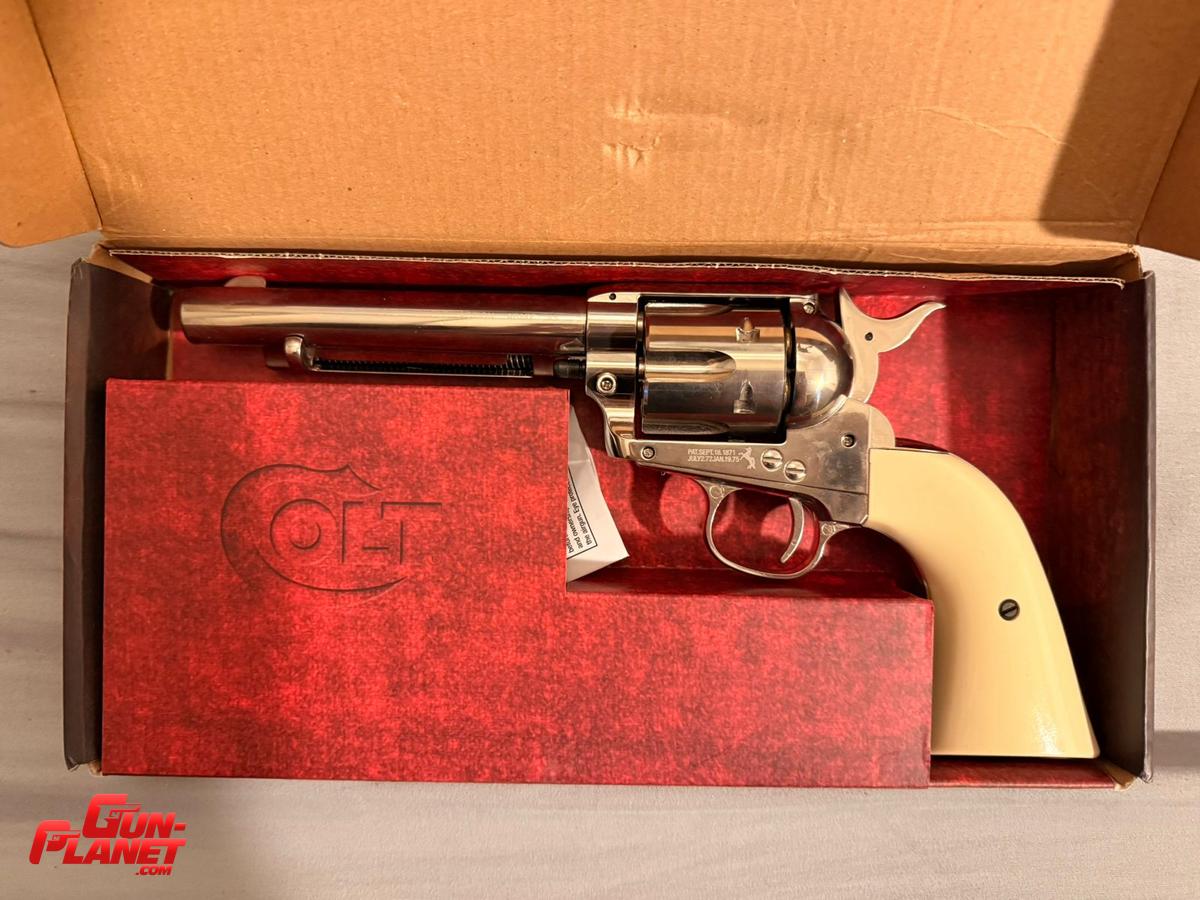 Revólver Umarex Colt Single Action Army (SAA) calibre 4,5 mm (.177 BB), réplica oficial licenciada por Colt, diseñada para coleccionistas y tiro recreativo. Reproduce fielmente el clásico revólver del Viejo Oeste, con excelente nivel de realismo, peso y terminaciones.