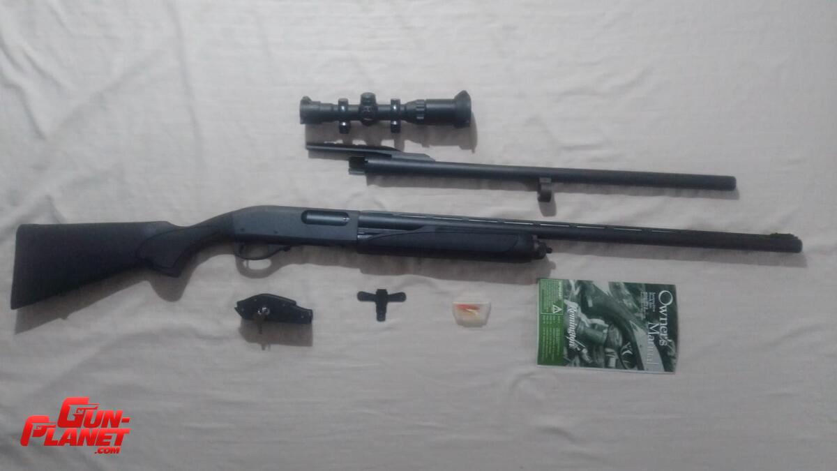 Escopeta de repetición con dos cañones intercambiables Cal. 12 UAB. Un cañón liso con banda ventilada, mirín bolita y/o mira de fibra óptica y choque intercambiable CYL. Otro cañón para caza estriado ideal Slugs/Brenneke con soporte de riel para mira telescópica o de punto. Con TODO lo que trae el combo, sin trampas ni engaños como muchas armerías que se "olvidan" de entregarte alguno de los accesorios que incluyen: Mira telescópica con retículo iluminado mil dot y tapas flip open, llave para intercambio de choke, candado de seguridad original que cubre la totalidad del arco del guardamonte con dos llaves y variedad de mirines de fibra de vidrio en distintos colores y formas, manual del usuario y todo en su caja original. IMPORTANTE: la escopeta se usó solo 20 cartuchos con perdigones el cañón liso y 10 Slugs con el cañón estriado ¡¡¡ESTÁ NUEVA!!!