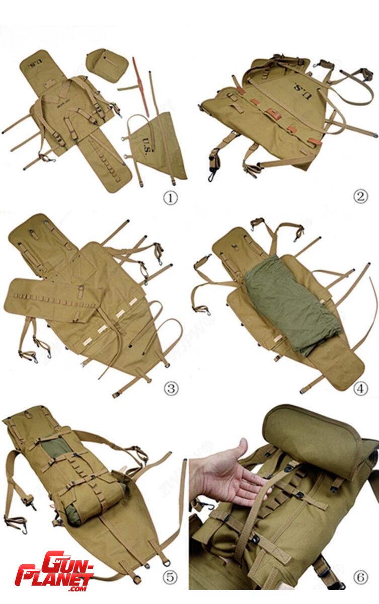 El Morral de Combate M-1928 (Haversack) fue el equipo estándar de la infantería estadounidense durante la Segunda Guerra Mundial. Este modelo, fabricado por Crawford Austin Mfg. Co. en Waco, Texas, destaca por su diseño "modular" de la época, compuesto por dos piezas principales: el cuerpo superior y la extensión inferior (conocida como "cola" o pack tail) que permitía ajustar el tamaño según la carga.