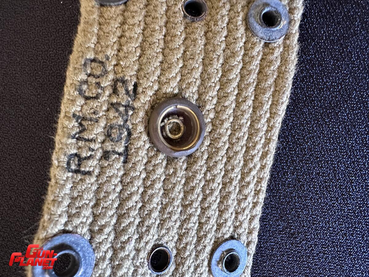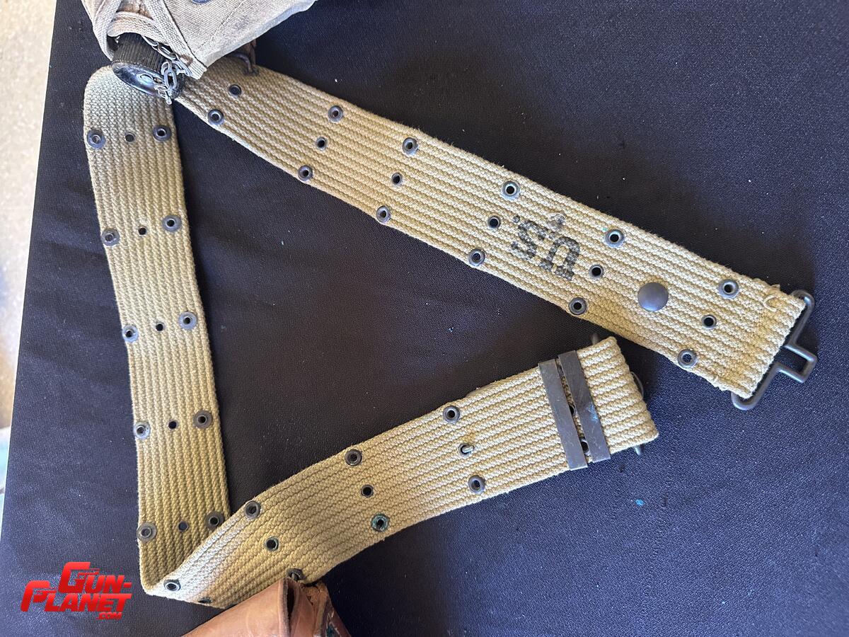 Identificación: Conocido como "M1936 web belt" o "cinturón de pistola de lona". A veces se le llama simplemente "cinturón de tela".