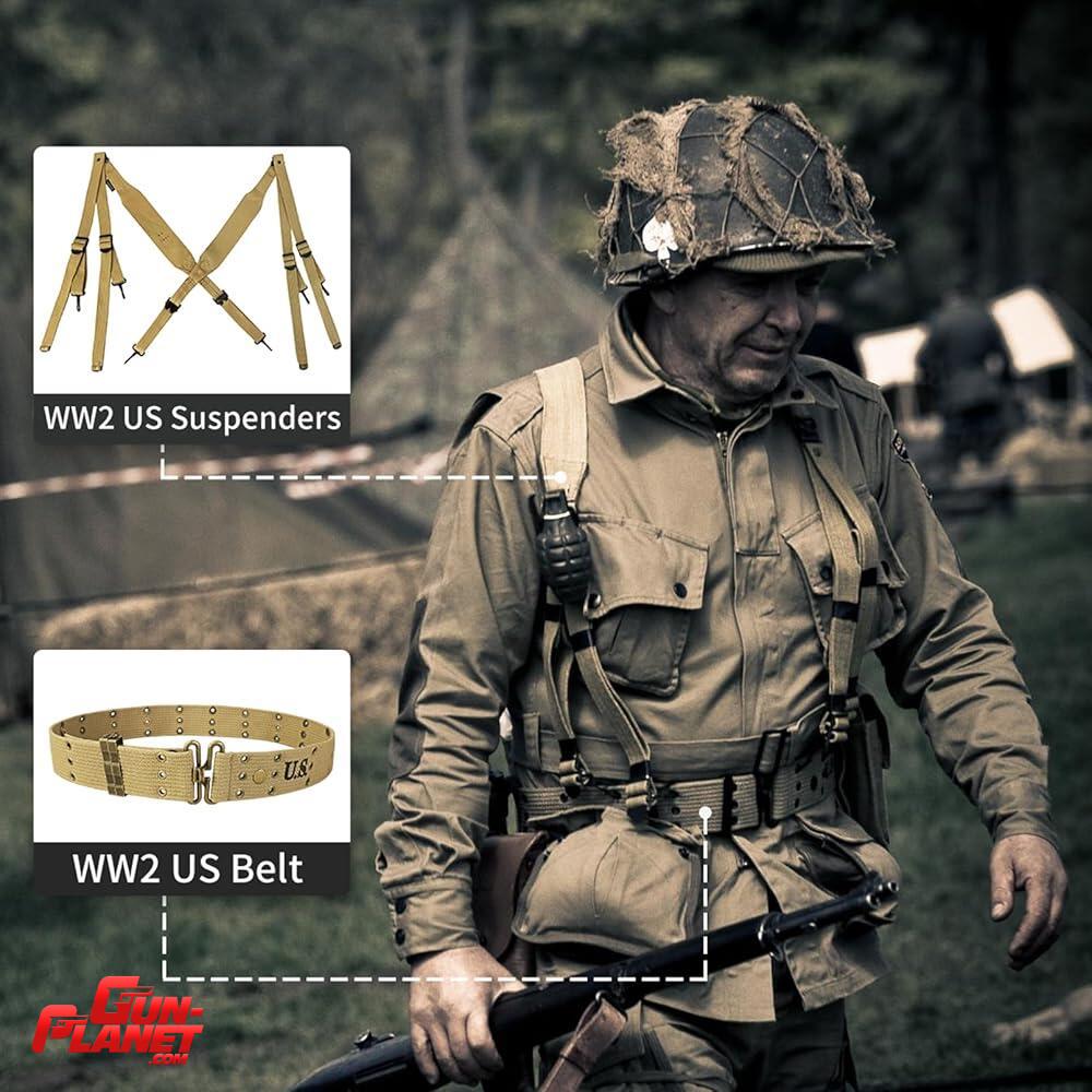 Configuración: Los soldados solían añadirle una funda para la pistola Colt M1911, una bolsa de primeros auxilios y el portacantina.
