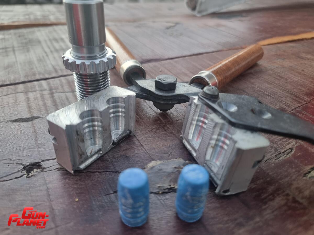 Molde Lee 500 de 440 grains para gascheck. El molde deja una pequeña aleta frontal en la punta. El valor incluye el trafil 501 que se observa en las fotos.
