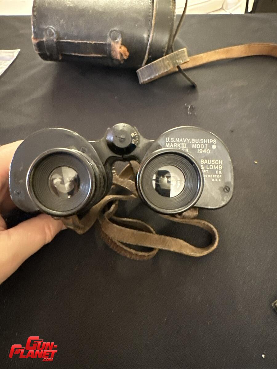 Se trata de unos prismáticos militares Bausch & Lomb 6x30 de la época de la Segunda Guerra Mundial, con marcas de ajuste ocular individuales y, posiblemente, de propiedad militar estadounidense oculta o desgastada. Estos binoculares se fabricaron para el Ejército de EE. UU. y la Marina de EE. UU. durante el conflicto.
