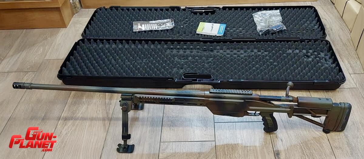 Espectacular fusil Steyr Mannlicher modelo SSG 08 terminación camo calibre .338 Lapua Magnum, nuevo sin disparar, en su estuche plástico de serie.
