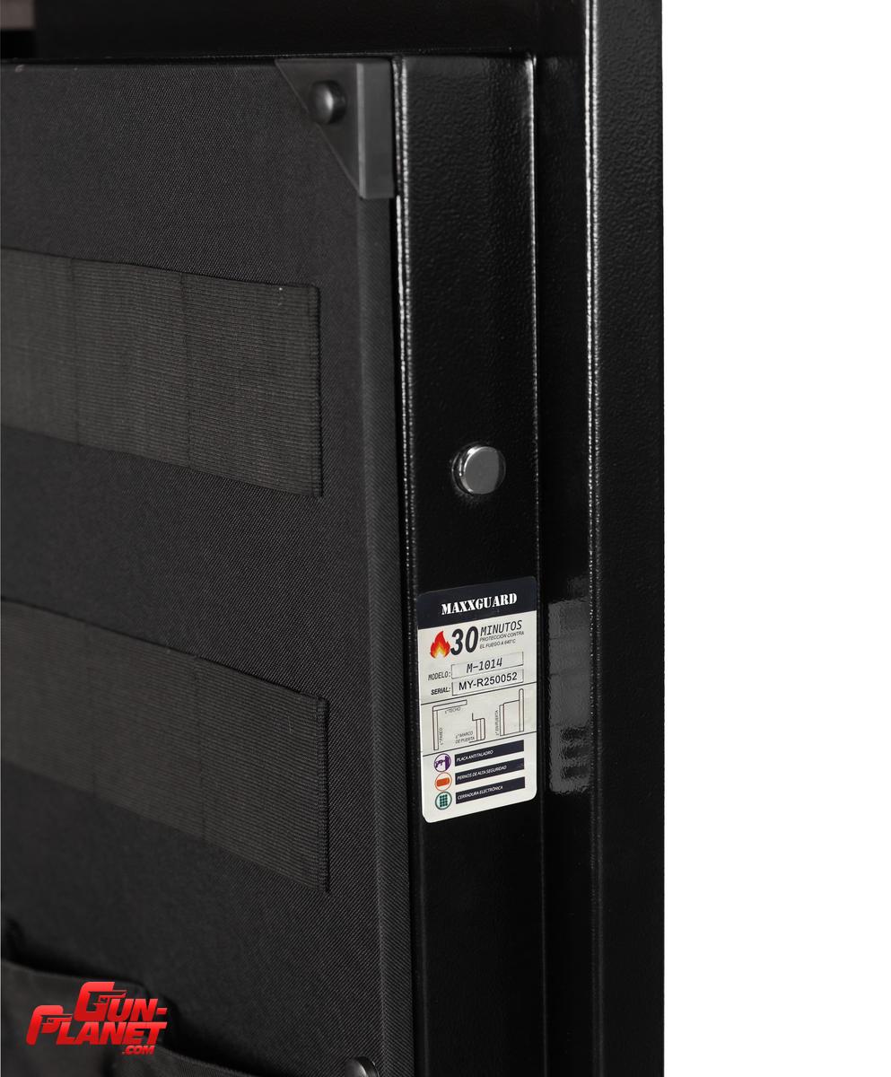 Este armero tiene capacidad máxima para 5 armas largas, con estanterías fijas de 3 niveles en su interior, complementado con un kit organizador con bolsillos en la puerta para accesorios adicionales y con protección contra el fuego.