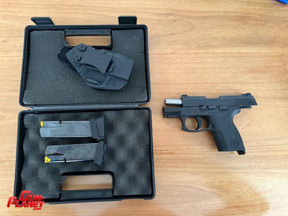 Con pistolera Houston interna diestra, dos cargadores 12 y 15 municiones, y caja original.