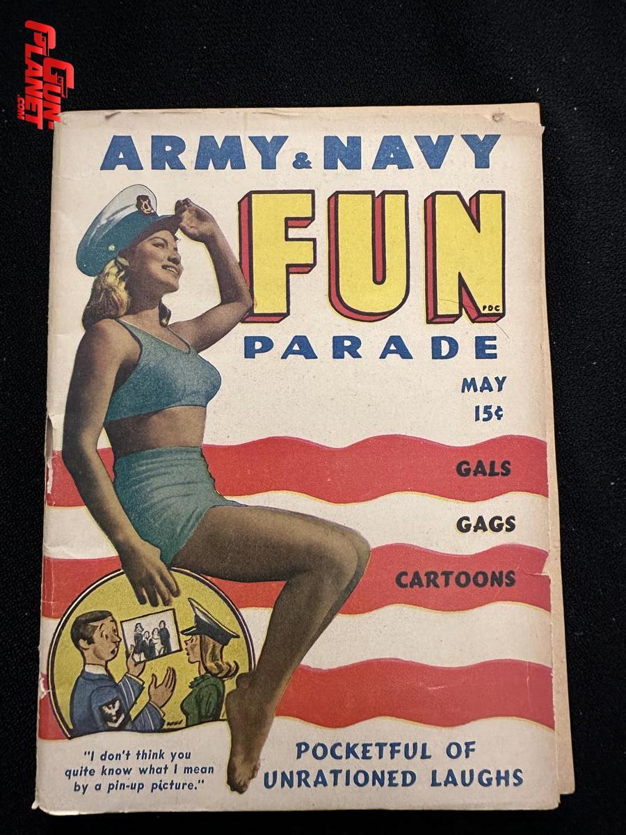 Se trata de una revista de historietas de humor picante y pin-ups vintage llamada Army & Navy Fun Parade.