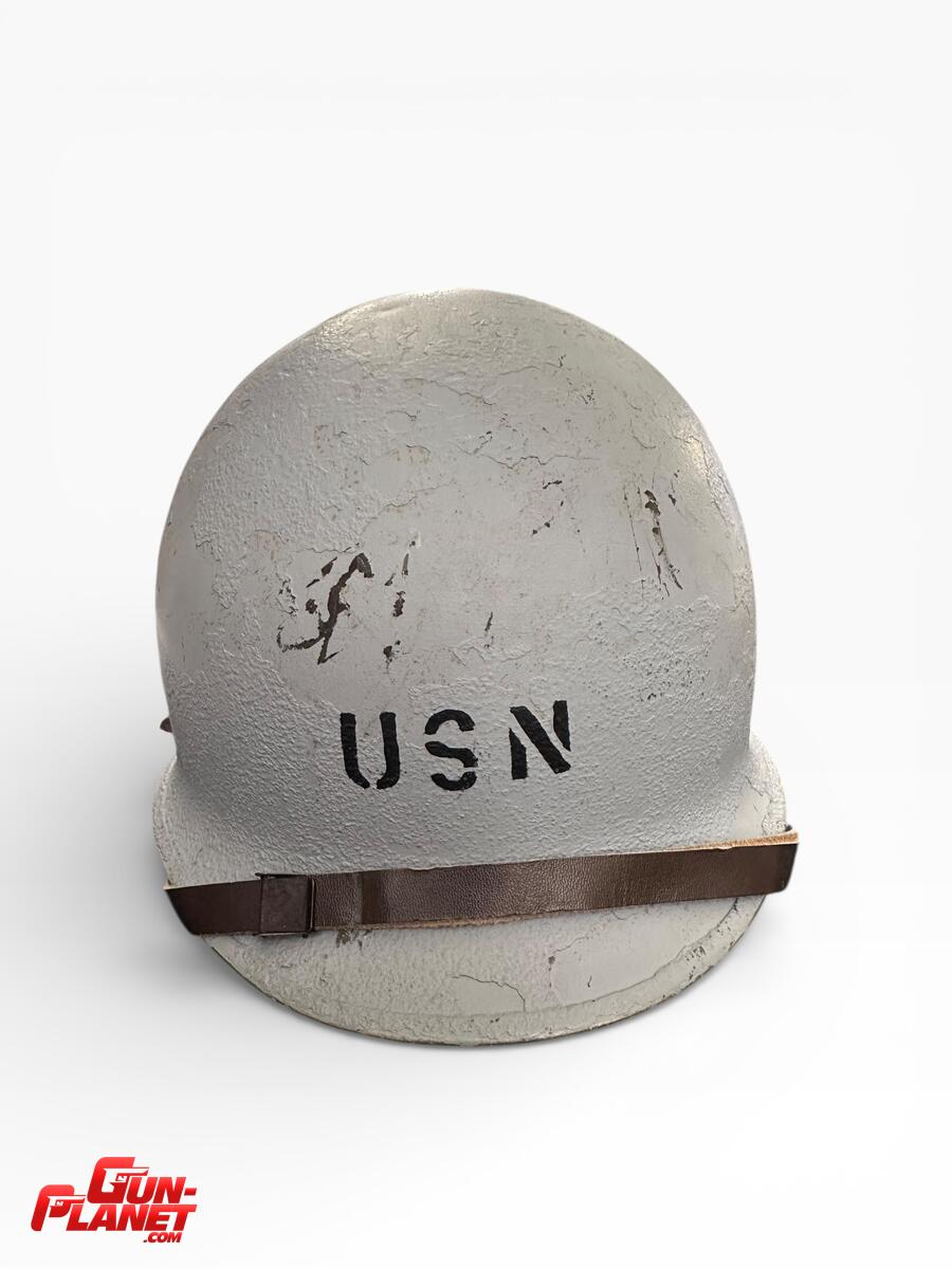 Es un casco militar M1 de la Marina de los Estados Unidos (USN),SHELL ARG , y LINER USA WWII ,utilizados durante la Segunda Guerra Mundial o la Guerra de Corea.