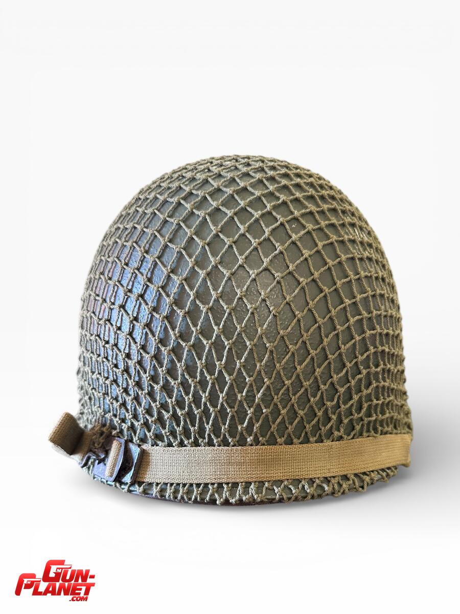 La red M1944 original de camuflaje, como la que se ve en la imagen, se usaba comúnmente en varios teatros de operaciones, incluyendo la Segunda Guerra Mundial y Vietnam.