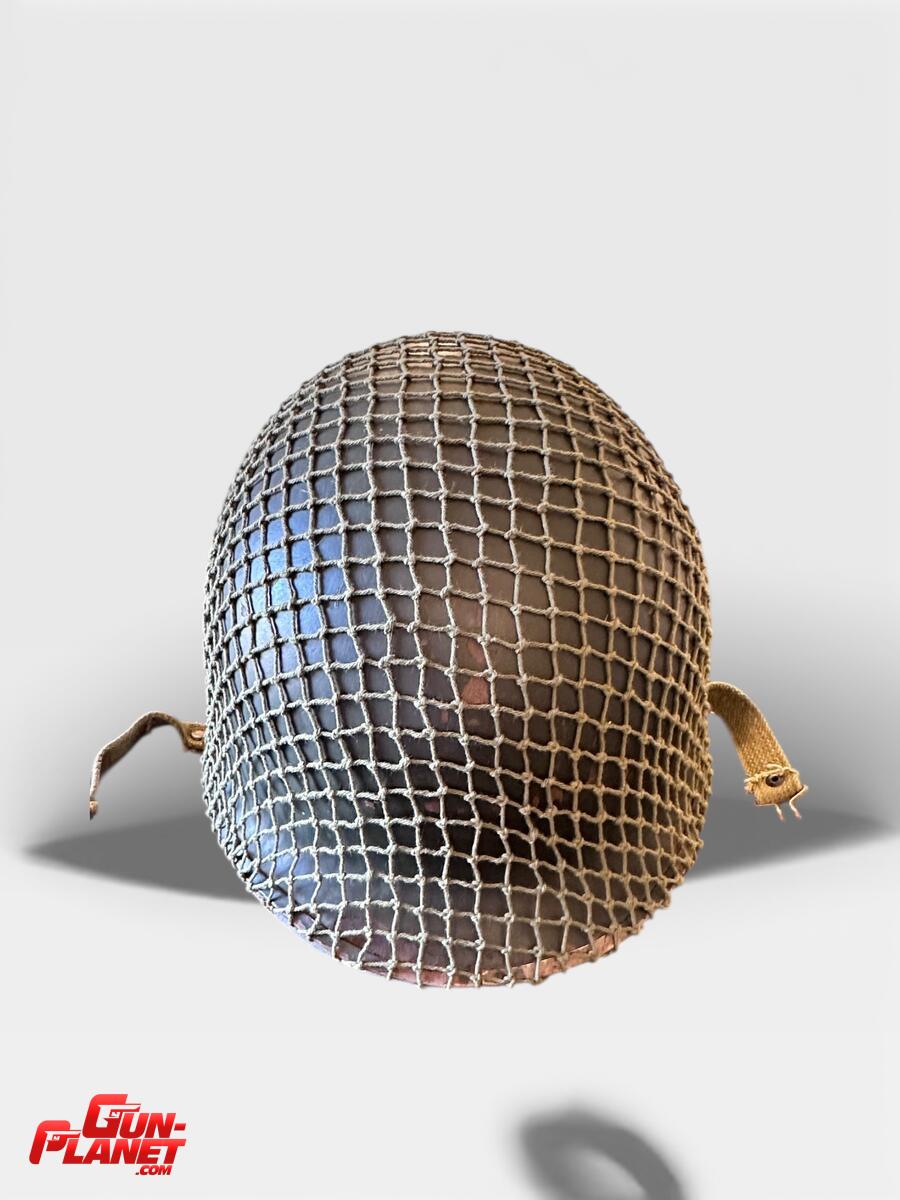 La red M1944 original de camuflaje, como la que se ve en la imagen, se usaba comúnmente en varios teatros de operaciones, incluyendo la Segunda Guerra Mundial y Vietnam.