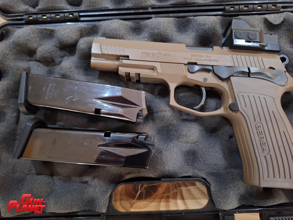 Vendo pistola Bersa TPR9 T FDE, con mira holografica cat sm1, pocos disparos, estuche original, dos cargadores.