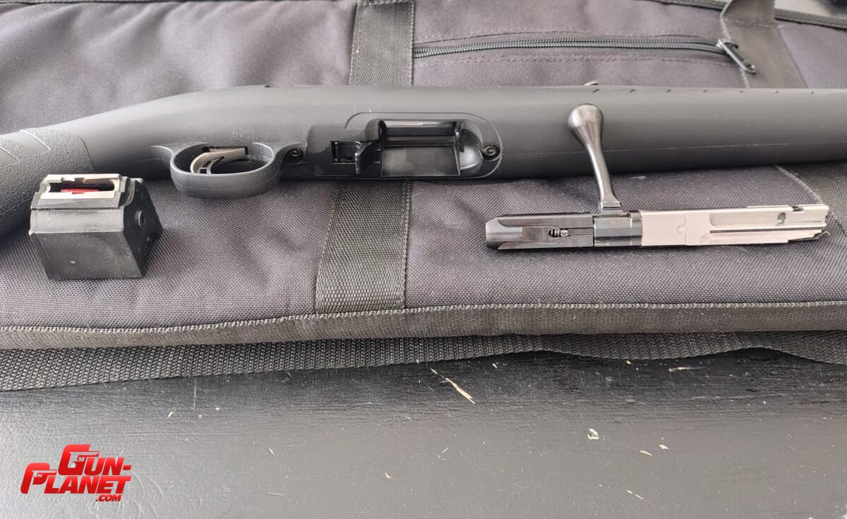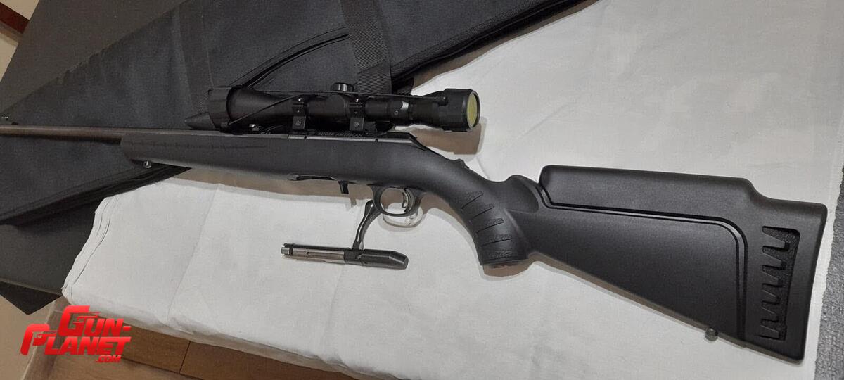Ruger American 22LR . Largo 104 cm (tiene miras abiertas). Riel 11mm. En total 400 disparos realizados con Remington Golden .