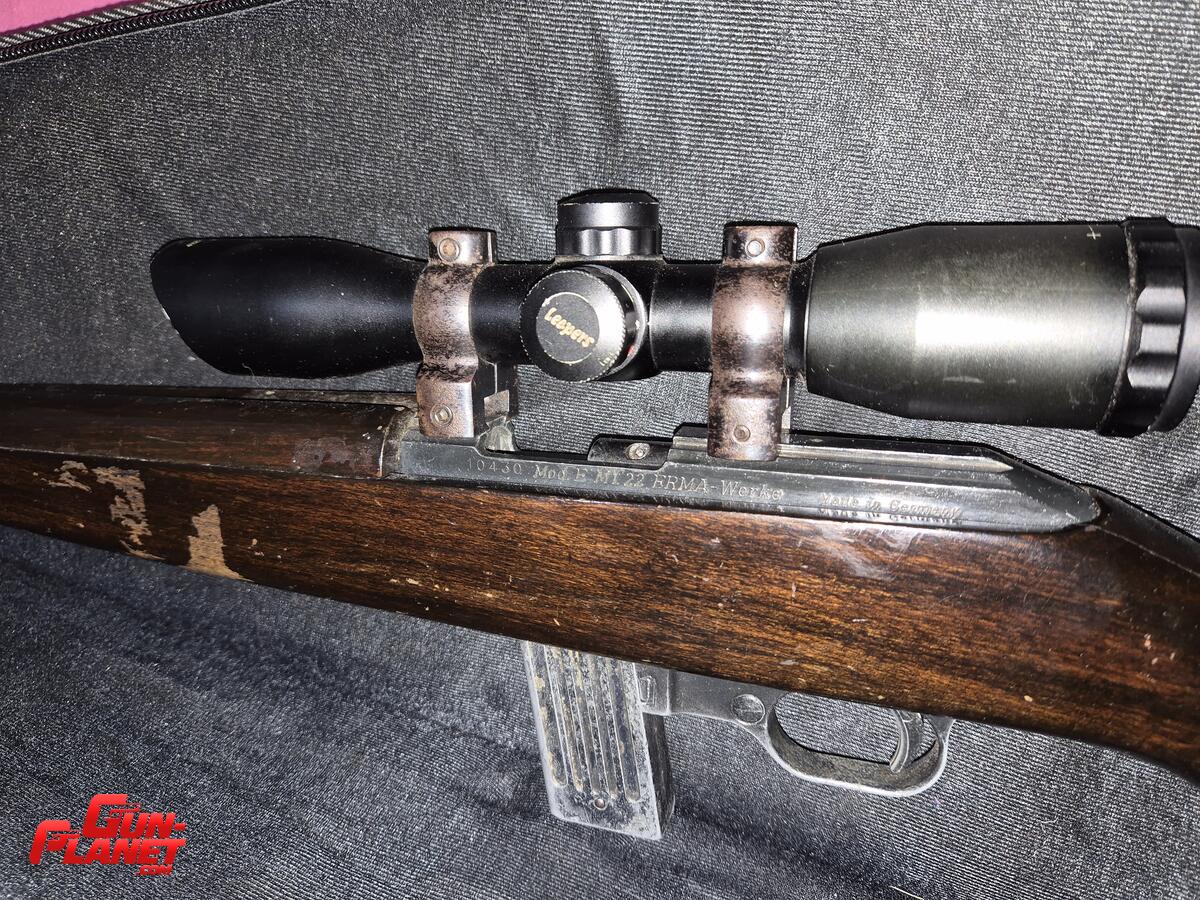 Carabina semiautomática Erma Werke, alemana, modelo E M1, calibre 22LR con CUIM. Se entrega con Funda Houston reforzada acolchada, mira y anillas. Permuto por escopeta del 12 pump-action.