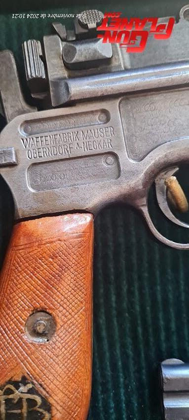 Pistola Mauser mod. C96 semiautomática calibre 9 mm. (tiene el culatín de madera, sin numeración) En buen estado. Tiene CUIM. El arma se encuentra en la ciudad de Córdoba y allí se realiza la operación y se transfiere en al acto Si tiene dudas puede consultar.