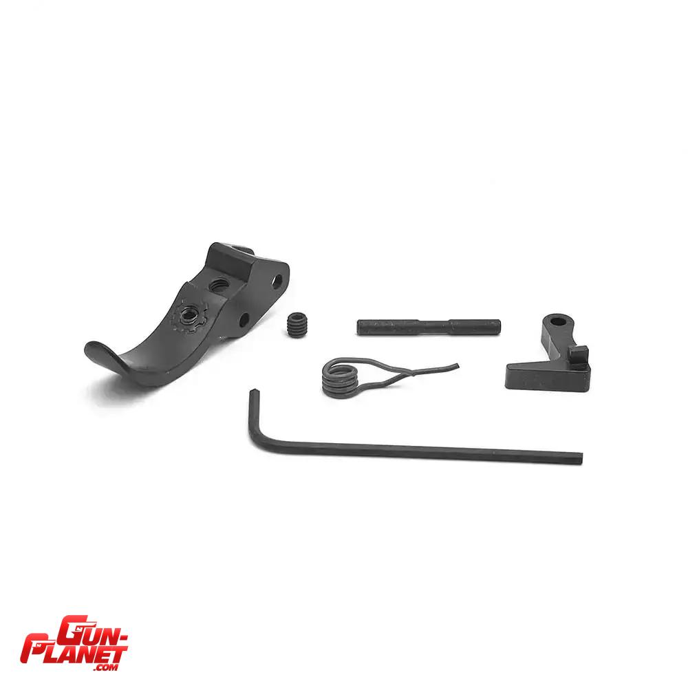 Hay dos tornillos ajustables en el gatillo que permiten un ajuste personalizado en ambas direcciones, tanto antes como después del recorrido (si es necesario).