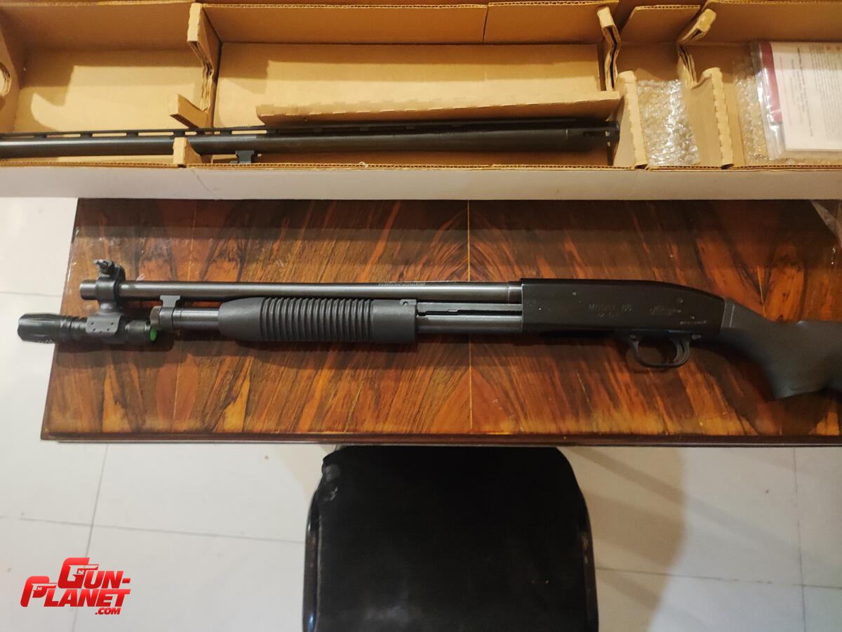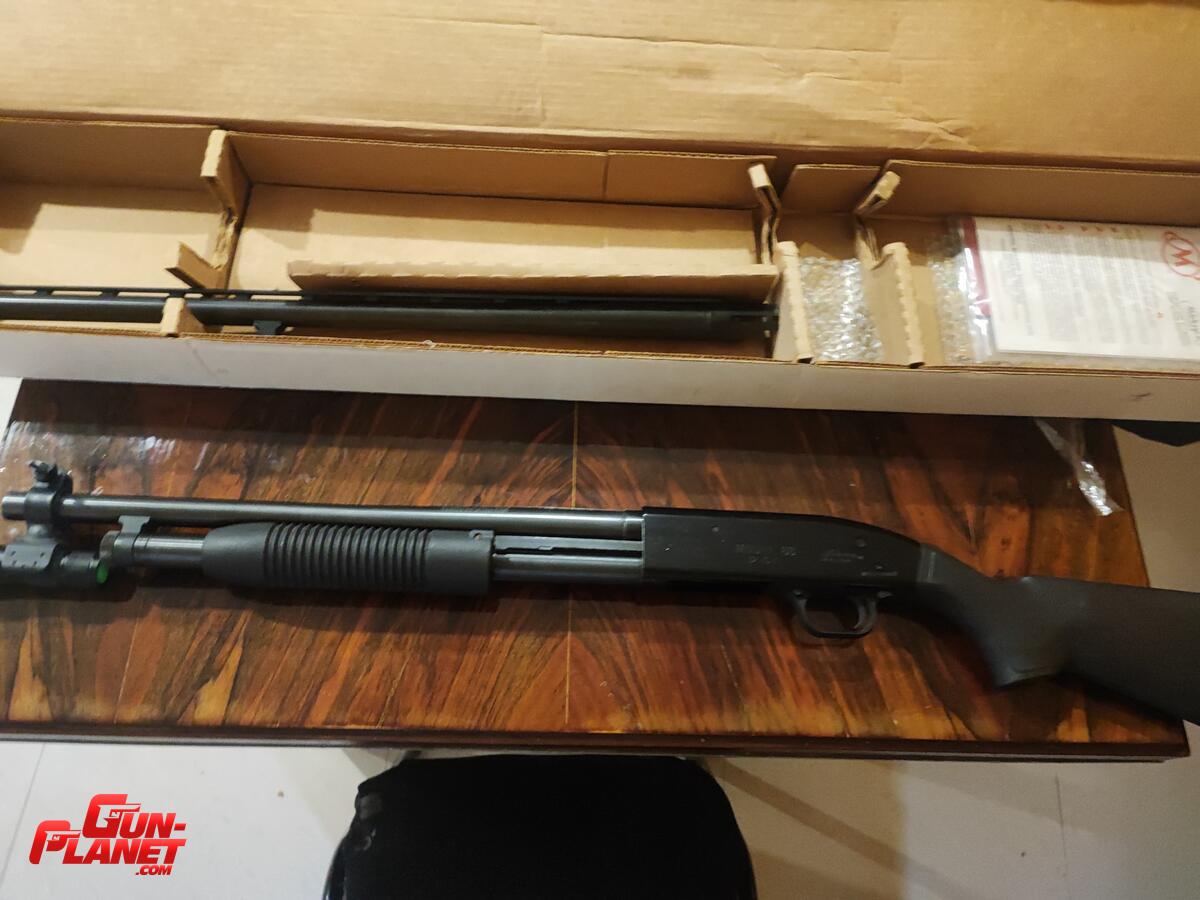 Escopeta Maverick by Mossberg calibre 12/76 modelo combo 5+1 un caño de 20 pulgadas para defensa y otro de 28 pulgadas con banda ventilada alza y guion cantonera de goma no permuto con su caja original