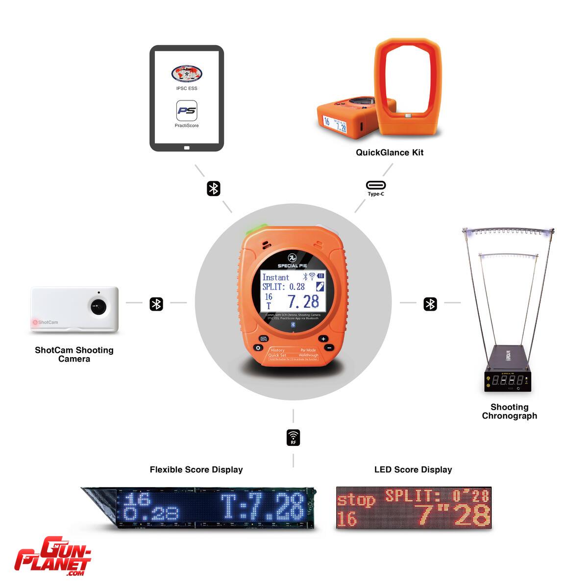 La conectividad Bluetooth integrada permite una sincronización fluida con PractiScore y PractiScore 2, optimizando la puntuación de los partidos y el análisis de los entrenamientos. La interfaz multilingüe (compatible con 10 idiomas) hace que el cronómetro sea ideal para su uso en competiciones internacionales y entornos de entrenamiento. Además, se conecta de forma inalámbrica a pantallas LED de gran tamaño, lo que lo hace perfecto para partidos con público.