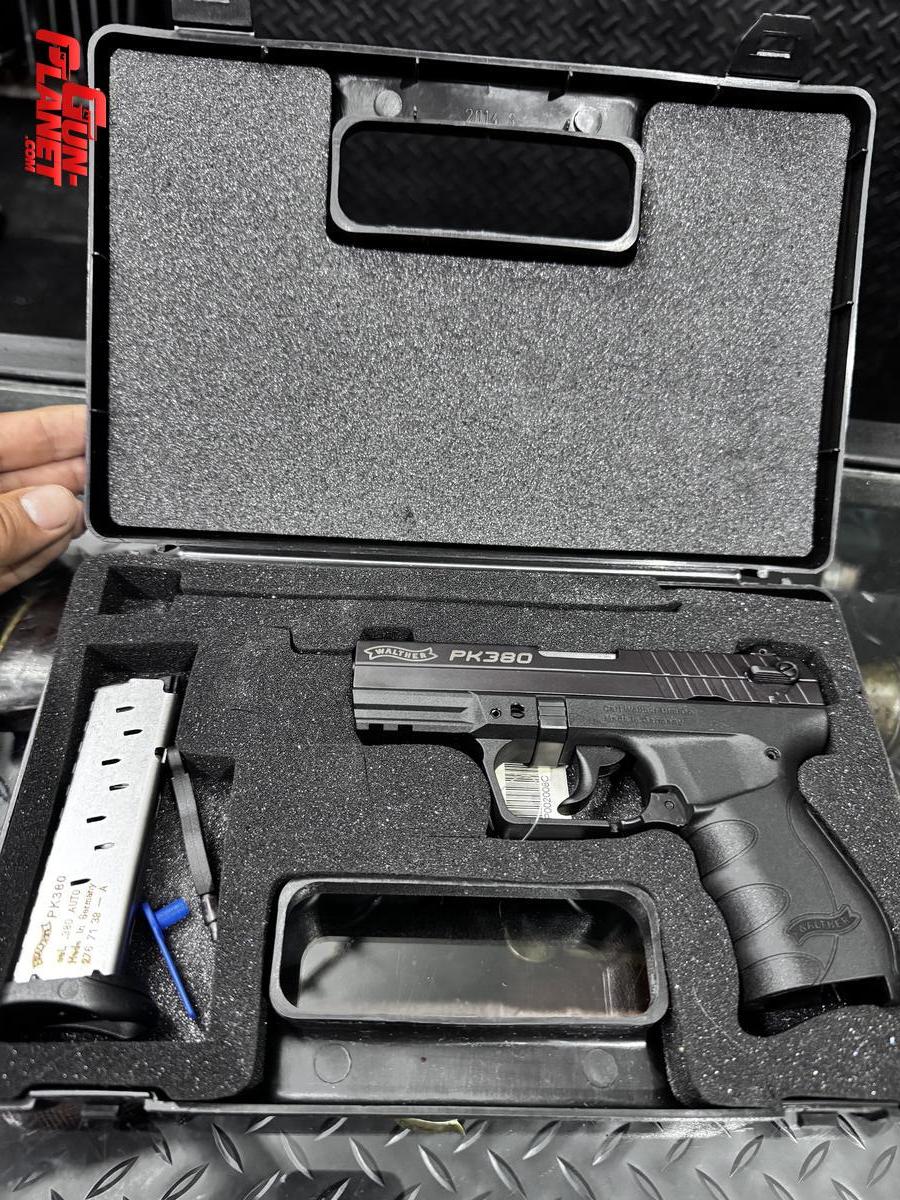 Pistola Walther PK380 calibre .380 ACP. Pistola semiautomática desarrollada sobre una de las plataformas más populares de Walther, la P22. La PK380 es una pistola ligera y ambidiestra.