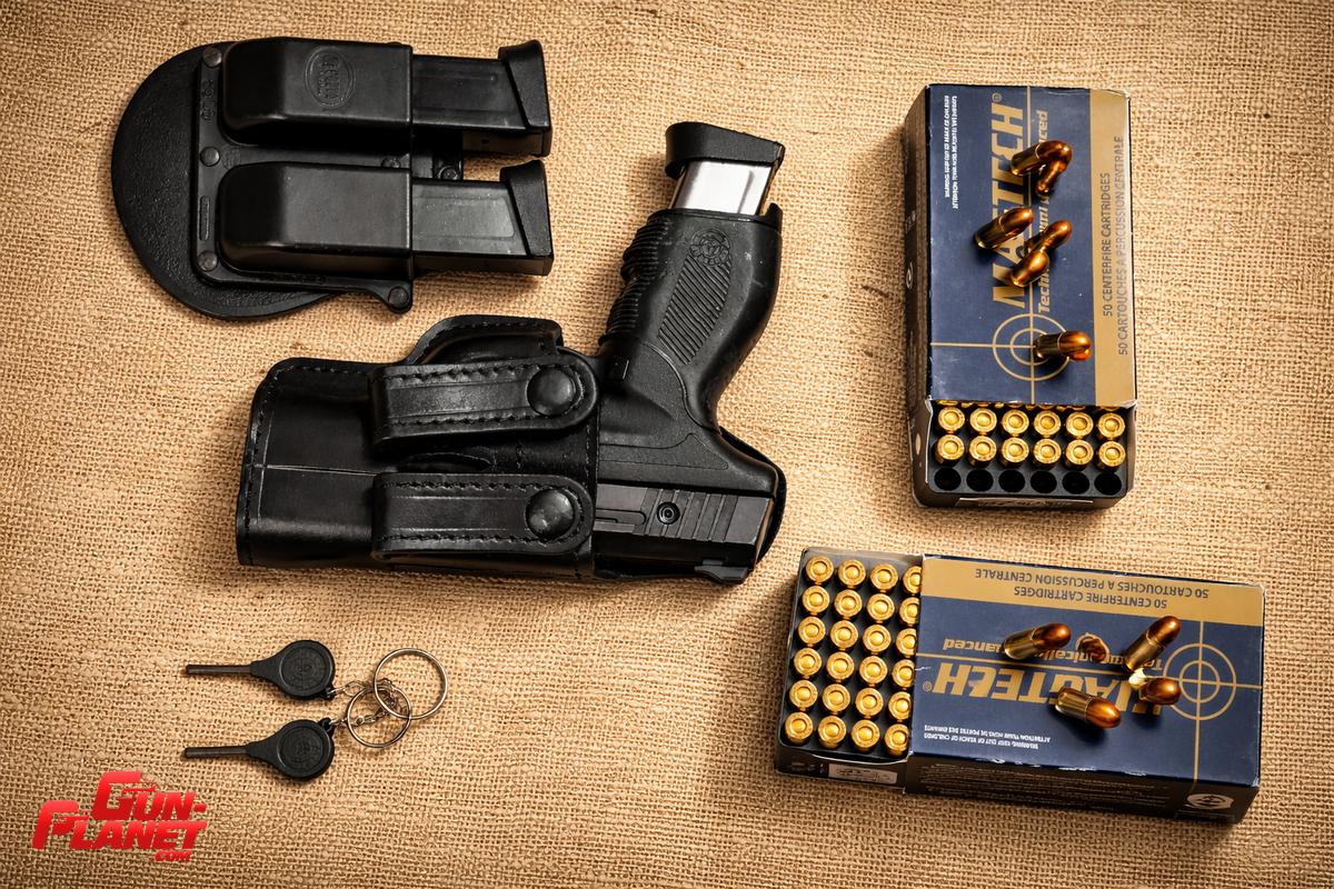 Con estuche original, manual en Portugués, Inglés y Castellano, dos llaves de bloqueo, tres cargadores de 17 municiones, Funda Interna Oculta para portación, Porta cargadores para dos (Fobus) y dos cajas de Magtech de municiones de 9 mm parabellum de 124 grain (contiene 80 municiones)