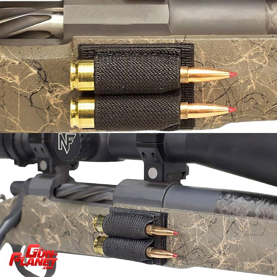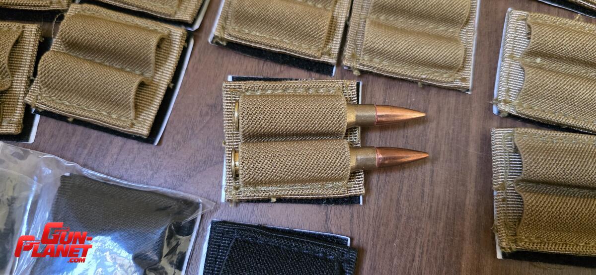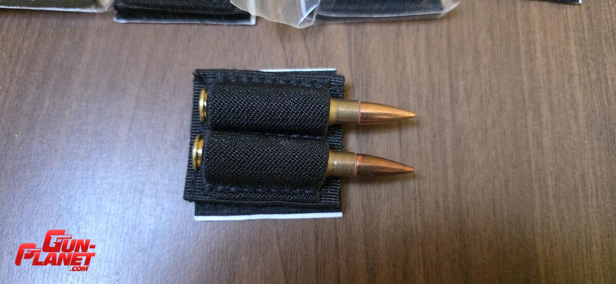 Porta munición mas DOS adhesivo con sistema de velcro en caso de no usarlo. Ideal para calibres .308, 30-06, .300wm, 338Lapua o de similar circunferencia. También útil para portar bolígrafos, luz química o pequeños accesorios.