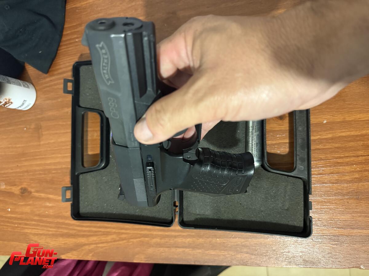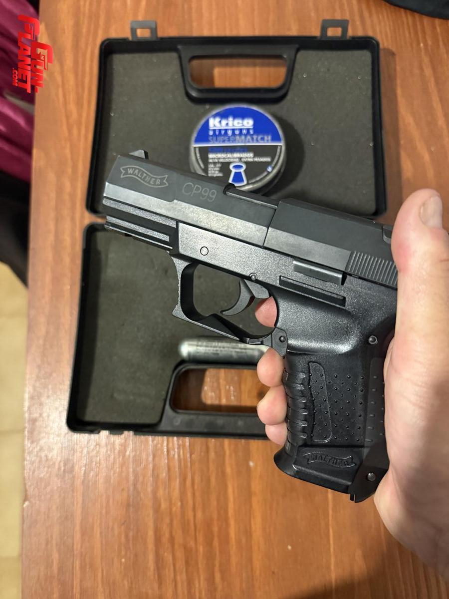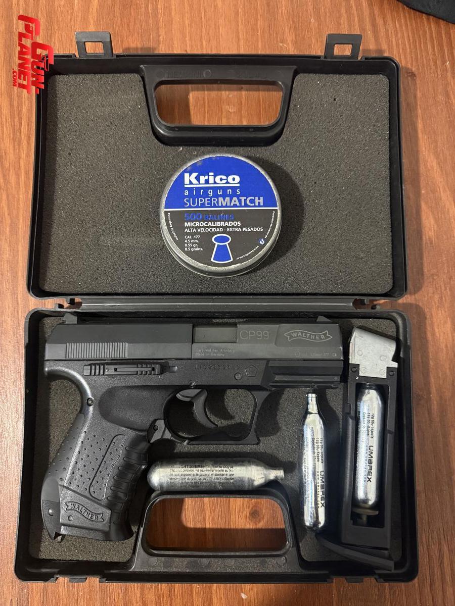 Pistola Umarex Walther CP 99 impecable poco uso.calibre 4.5 en caja con 2 garrafas y mas de 100 balines.