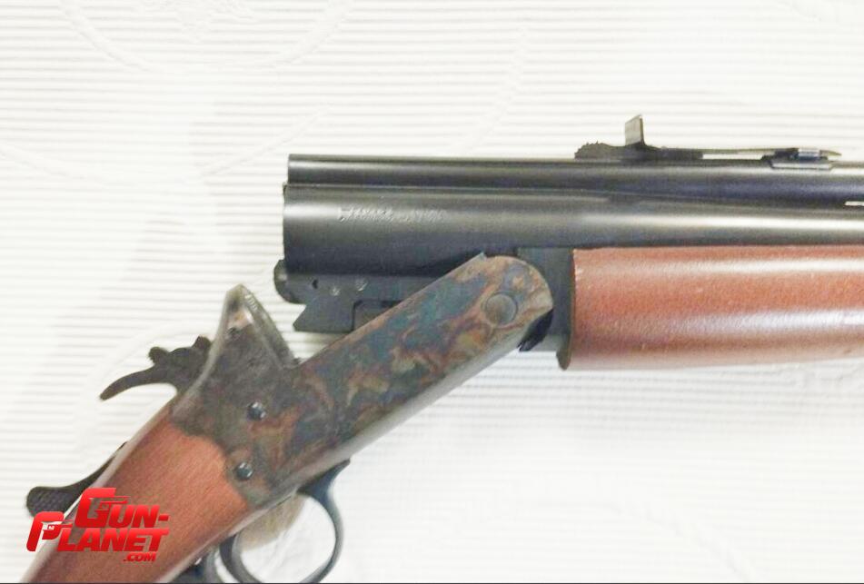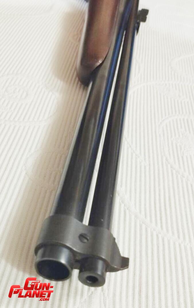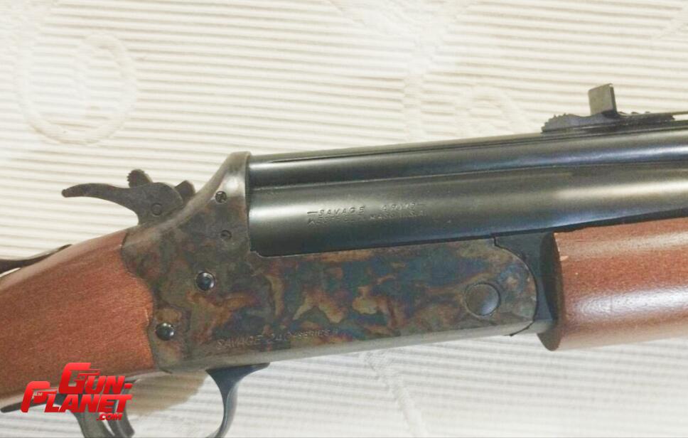 Fusil de Caza y Supervivencia SAVAGE. Modelo 24 C "Camper". Doble cañón superpuesto, superior calibre 22 Lr inferior 20 Uab. Compacto , largo total 87 cm. Selector de disparo sobre el martillo