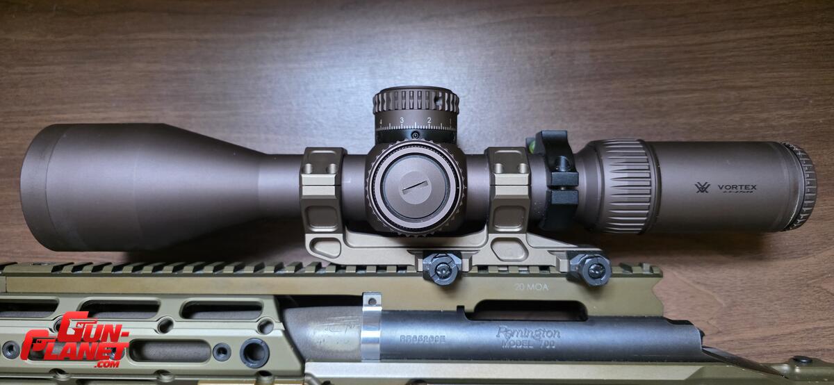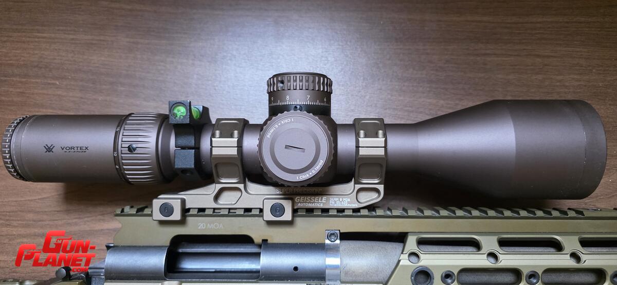 Retículo EBR 7 y torretas con corrección en MRAD (miliradianes) y 11 intensidades de iluminación.