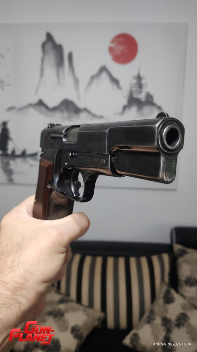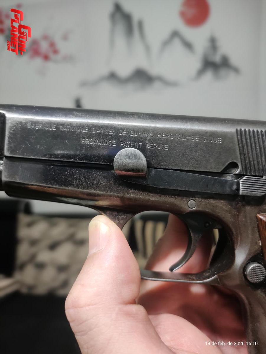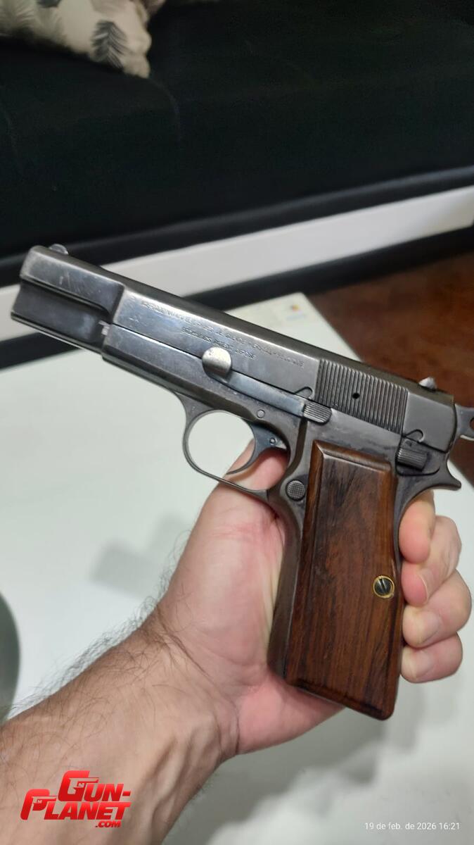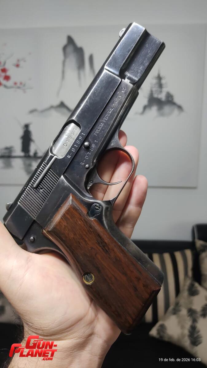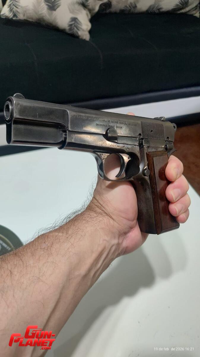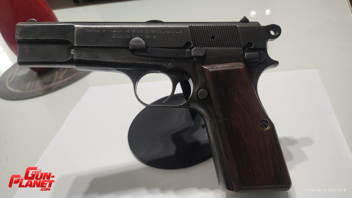 Pistola provista de dotación PFA de origen Belga Browning Herstal-Belgique calibre 9mm. Cuños originales de fábrica. Pavonado brillante con señales de cierto desgaste por el uso. De buen funcionamiento. Se entrega con dos cargadores y correaje táctico.