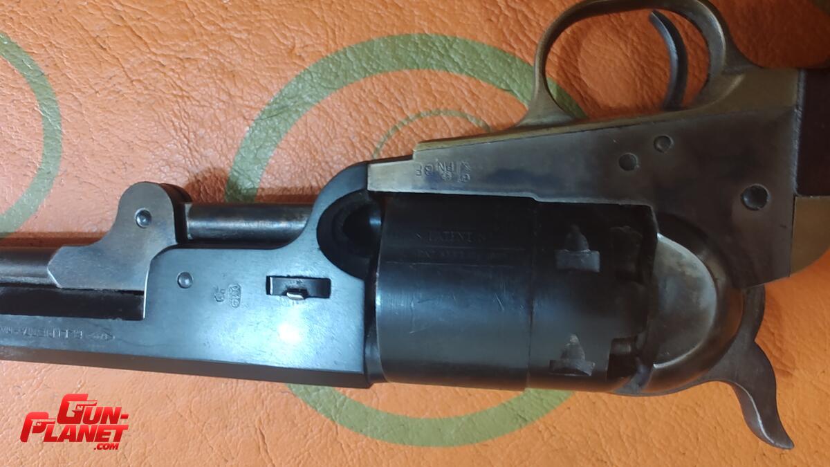 Sistema: Avancarga (pólvora negra). Es un revólver de acción simple de 6 tiros.