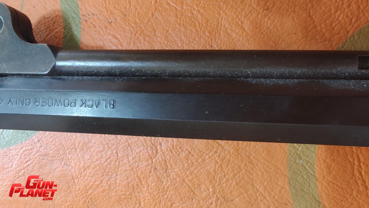 Inscripciones de Seguridad: "BLACK POWDER ONLY .44 CAL". Esto indica que solo puede usar pólvora negra; el uso de pólvora moderna (sin humo) es extremadamente peligroso en estas armas.