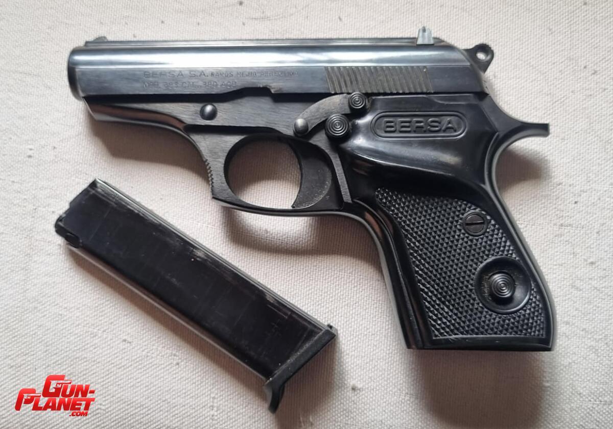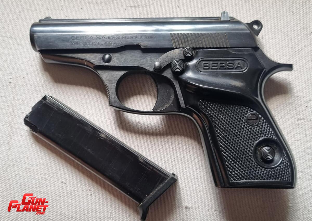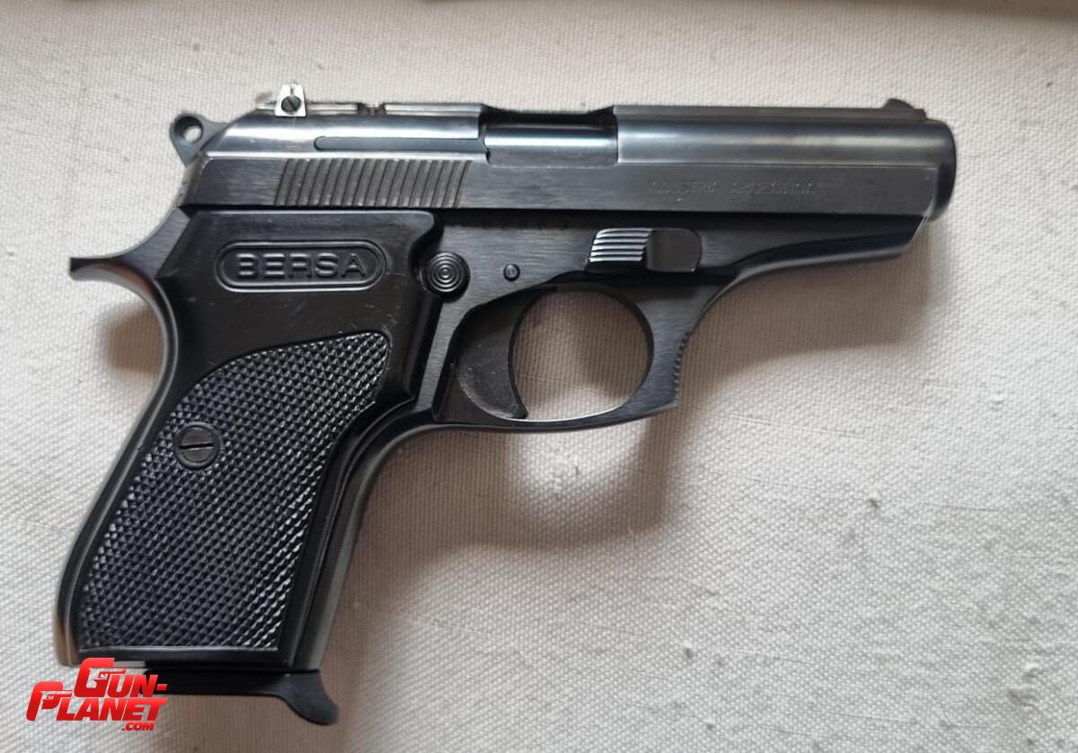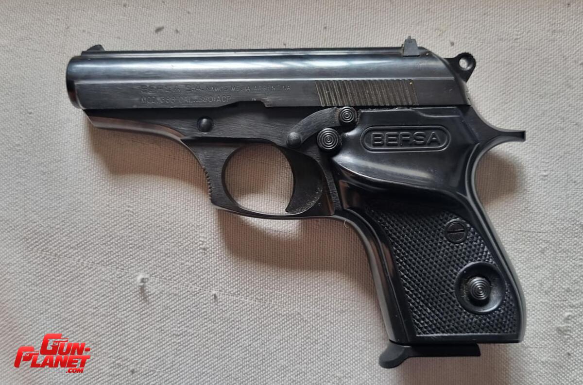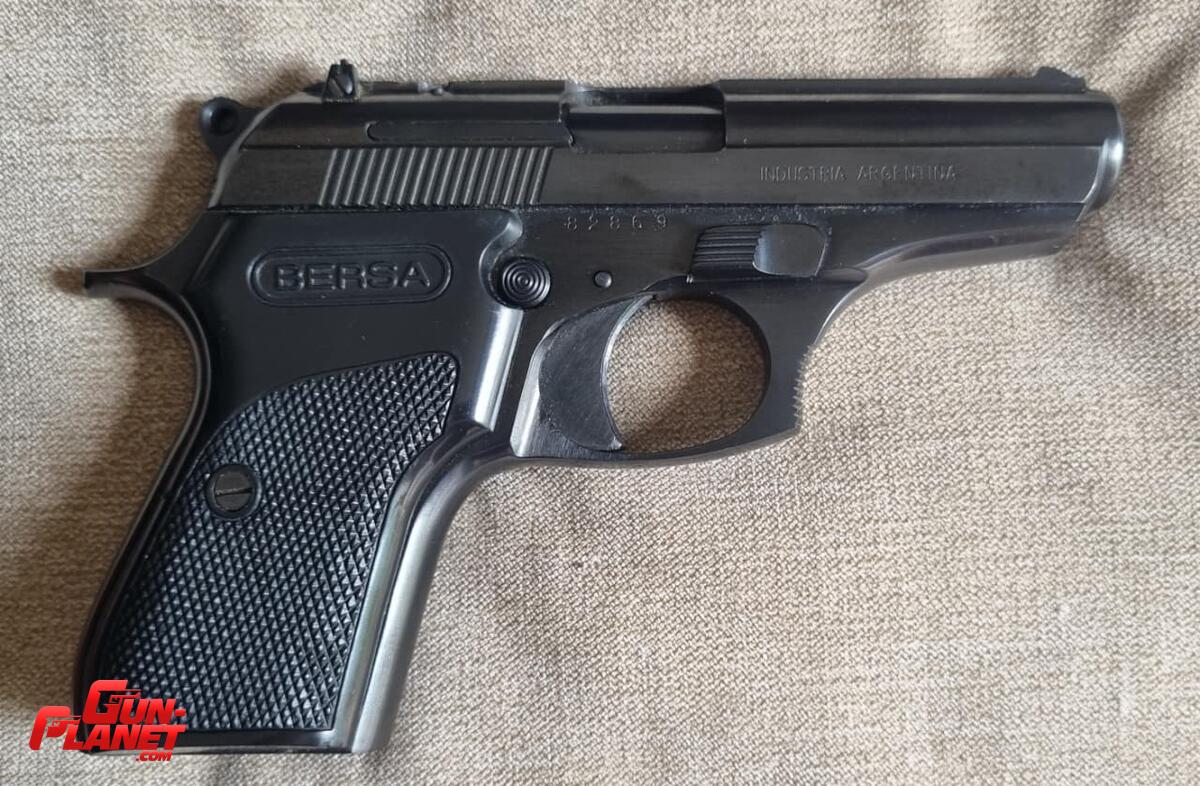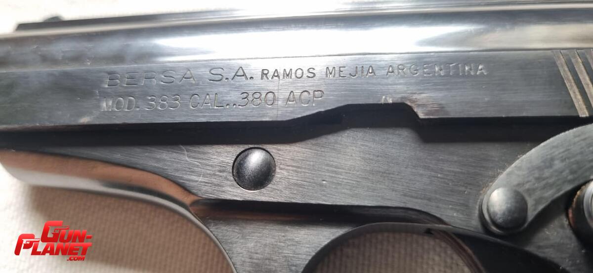 pistola semiautomática simple acción BERSA modelo 383 totalmente construida en acero, prácticamente sin uso con su cargador original en perfectas condiciones, con CUIM