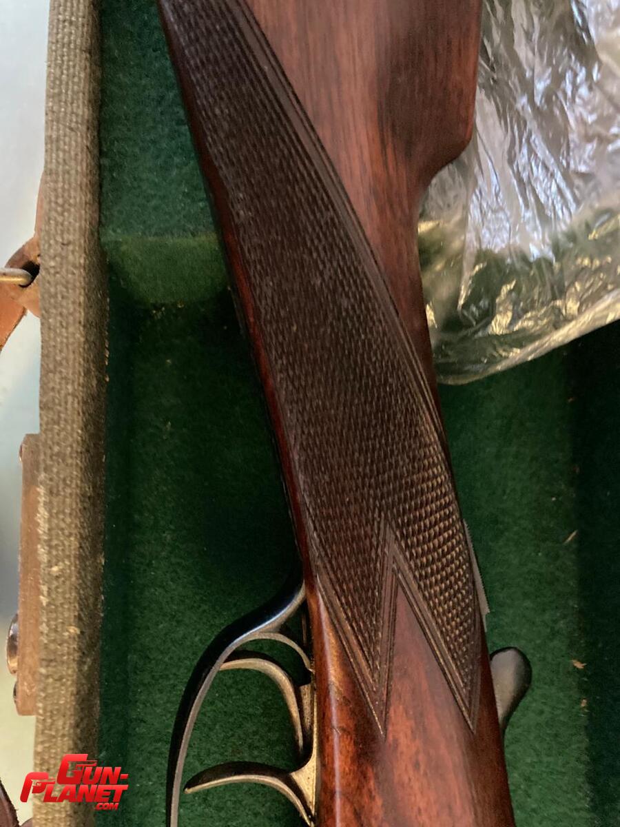 Escopeta inglesa webley scott calibre 12 yuxtapuesta sin disparar en su caja original con baqueta y cepillo de madera original. TIENE CUIM. Podria tomar algo de mi interes en parte de pago.Se puede ver en el tfaba o tflz. Se entrega al momento de la transferencia en tfaba o tflz