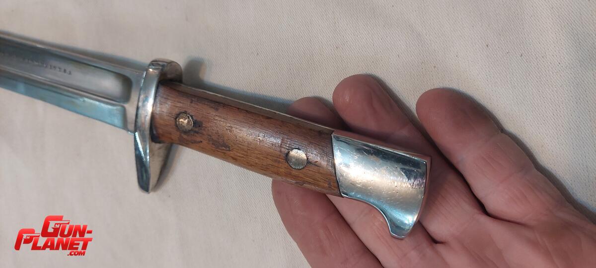Esta conversión fue llevada a cabo en los talleres del antiguo Arsenal de Guerra de Uruguay (presumiblemente a mediados del S XX) para dar nueva utilización a estas bayonetas cuyo rifle estaba ya un tanto obsoleto en el mismo momento de su adquisición (era ya la época del Mauser) Originalmente una bellisima pieza, resulta también agraciada como cuchillo