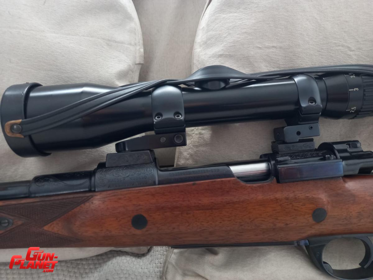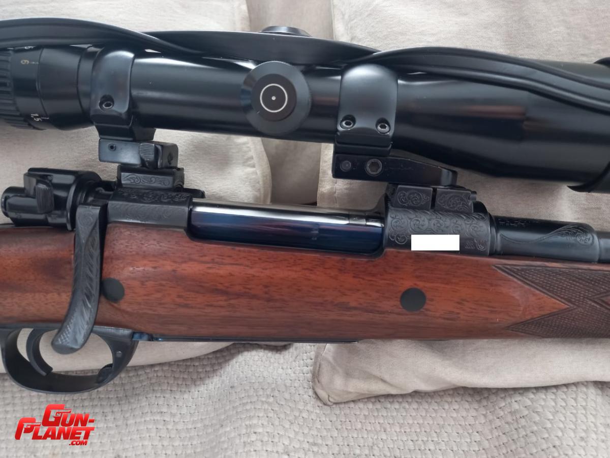 Fusil mauser 1909 stutzen. Armado por Ruben Giaconne. Se partio de una accion y un caño aleman nuevos 7,65, sin uso. La culata es de una mauser deportivo original, solo se le agrego la cantonera, la puntera de ebano y los refuerzos magnum con las tapas de ebano. Seguro lateral. Alza y guion. Grabados de Carlos Chiara. Cola de disparador Timney. Bases y anillas de quita y pon alemanas de 30. No tiene mas de 20 disparos. Solo se uso en 2 cacerias. Incluye dies nuevos RCBS, vainas nuevas FM y dos cajas y media de puntas Hornady. No incluye la mira. 2600 dolares.
