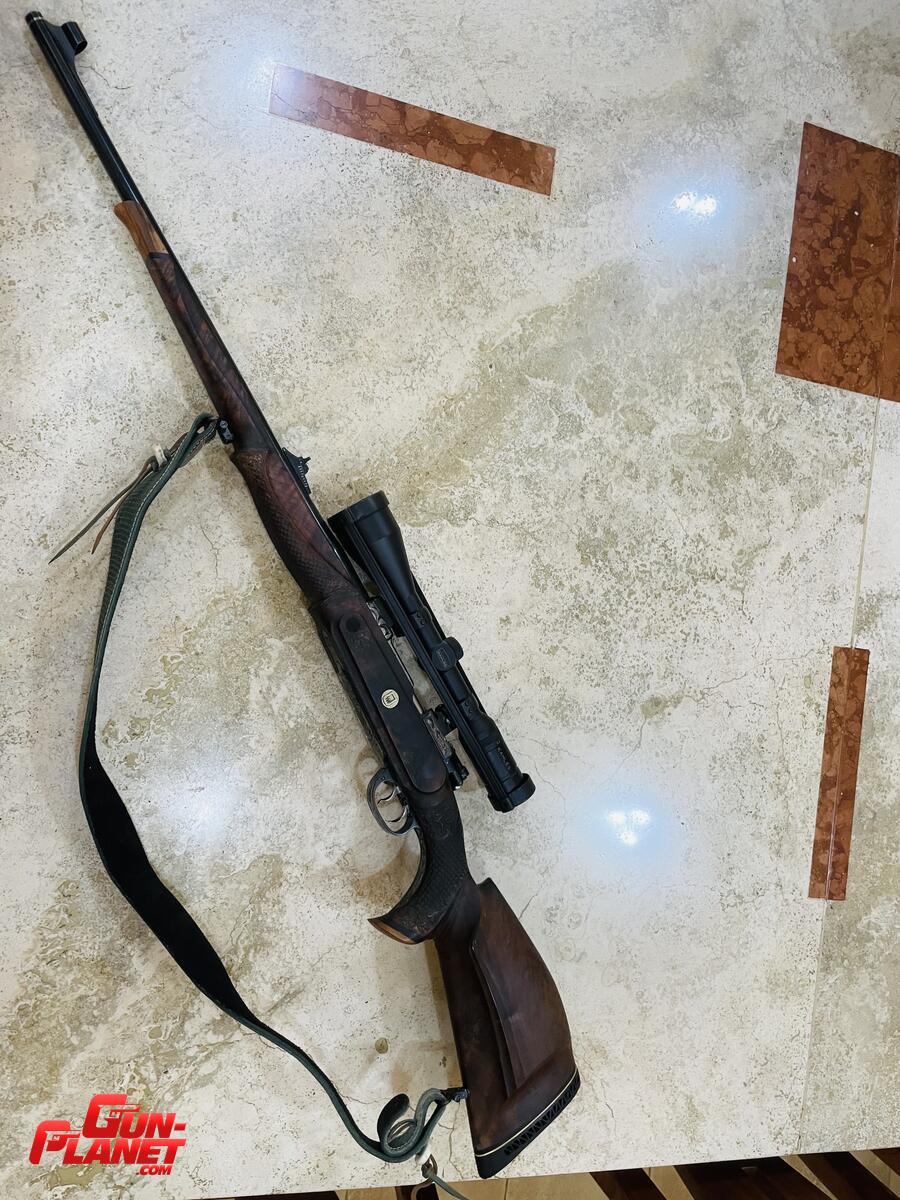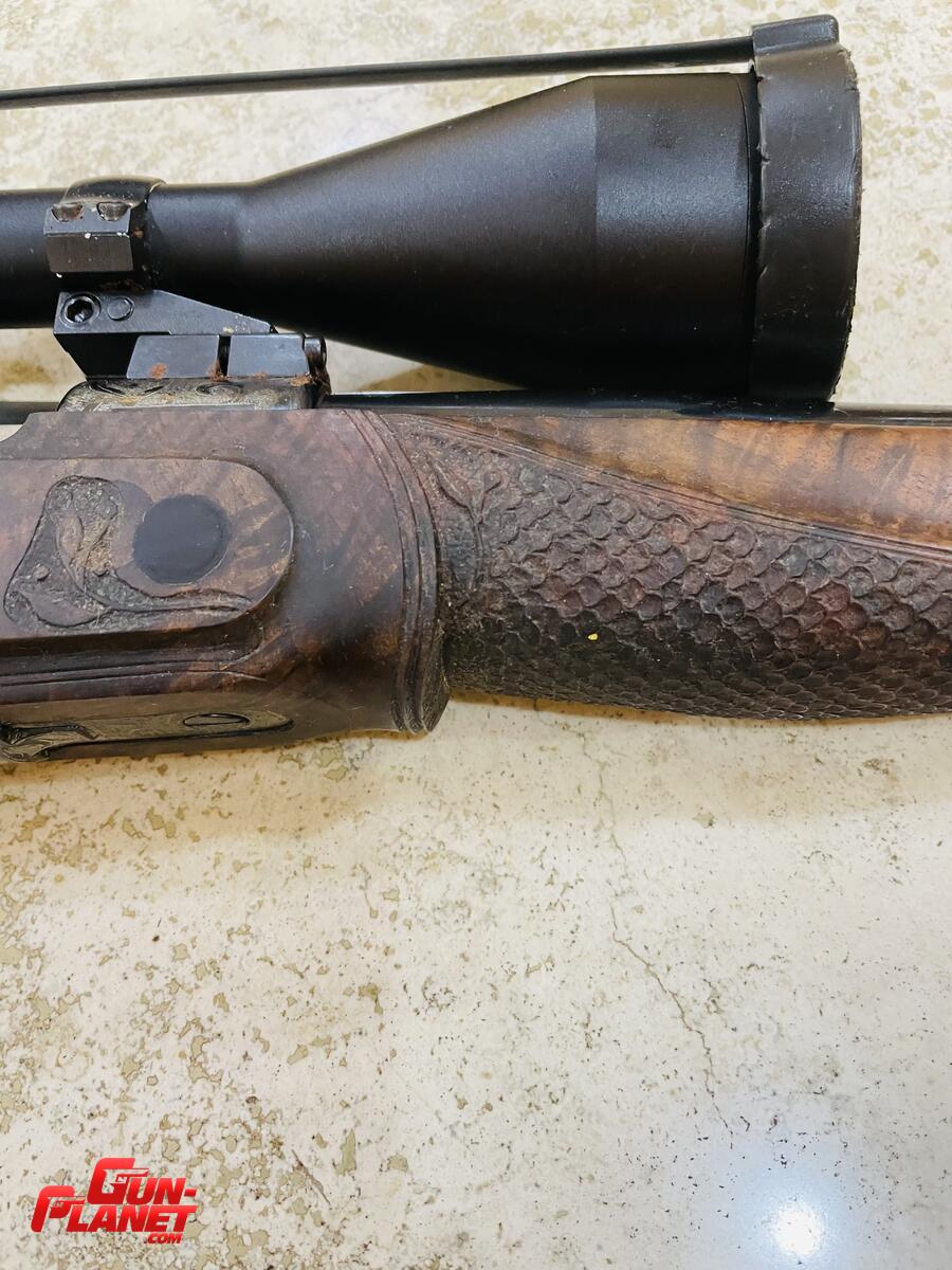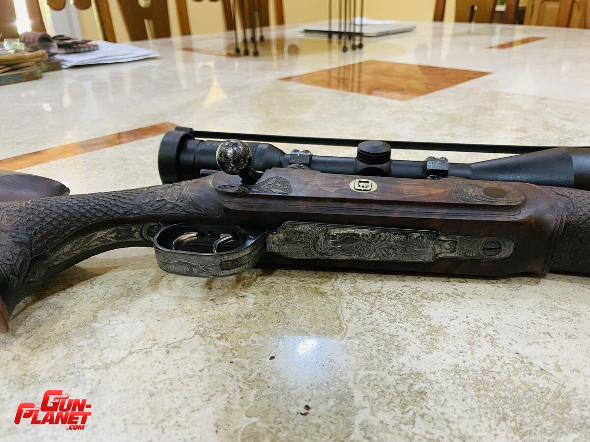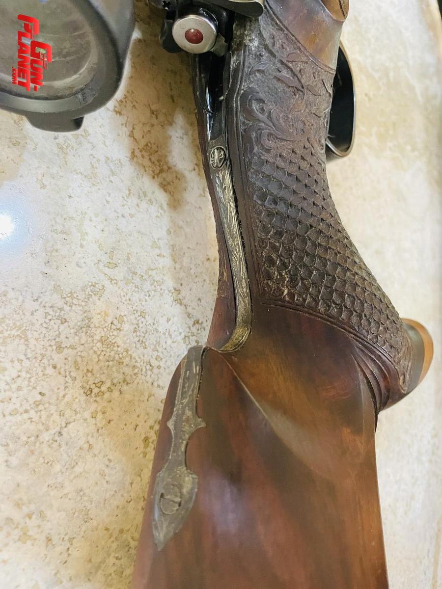 Culata núcleo de nogal, partes de olivo e incrustaciones de ébano, escamado artesanal, acción labrada. Cañón lottar Walther , montaje Apple