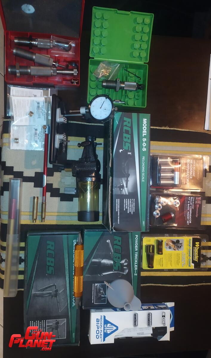 Como accesorios (no se venden por separado, van de regalo) Maletin rigido marca Plano, funda y manta de tiro Huemul, Die´s de competición con Bushings, comparadores Hornady, balanza electrónica y mecanica, trimer, colocador de fulminantes, trickler, medidor de concentricidad Sinclair, insumos y demás ítems que se pueden verse en la foto.
