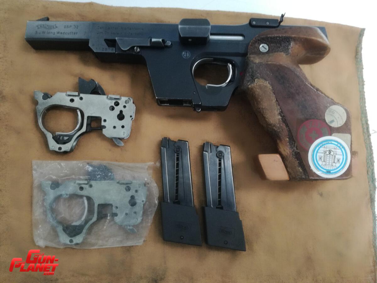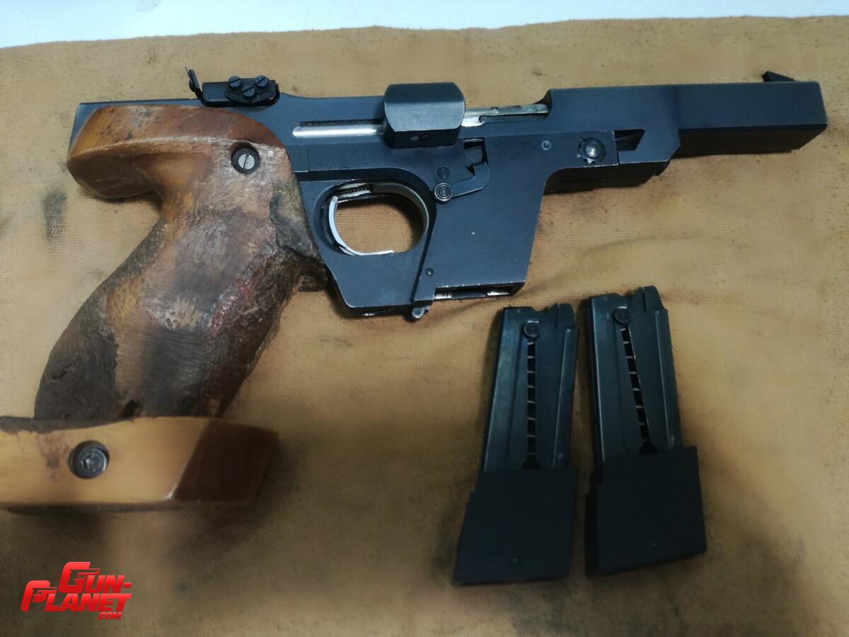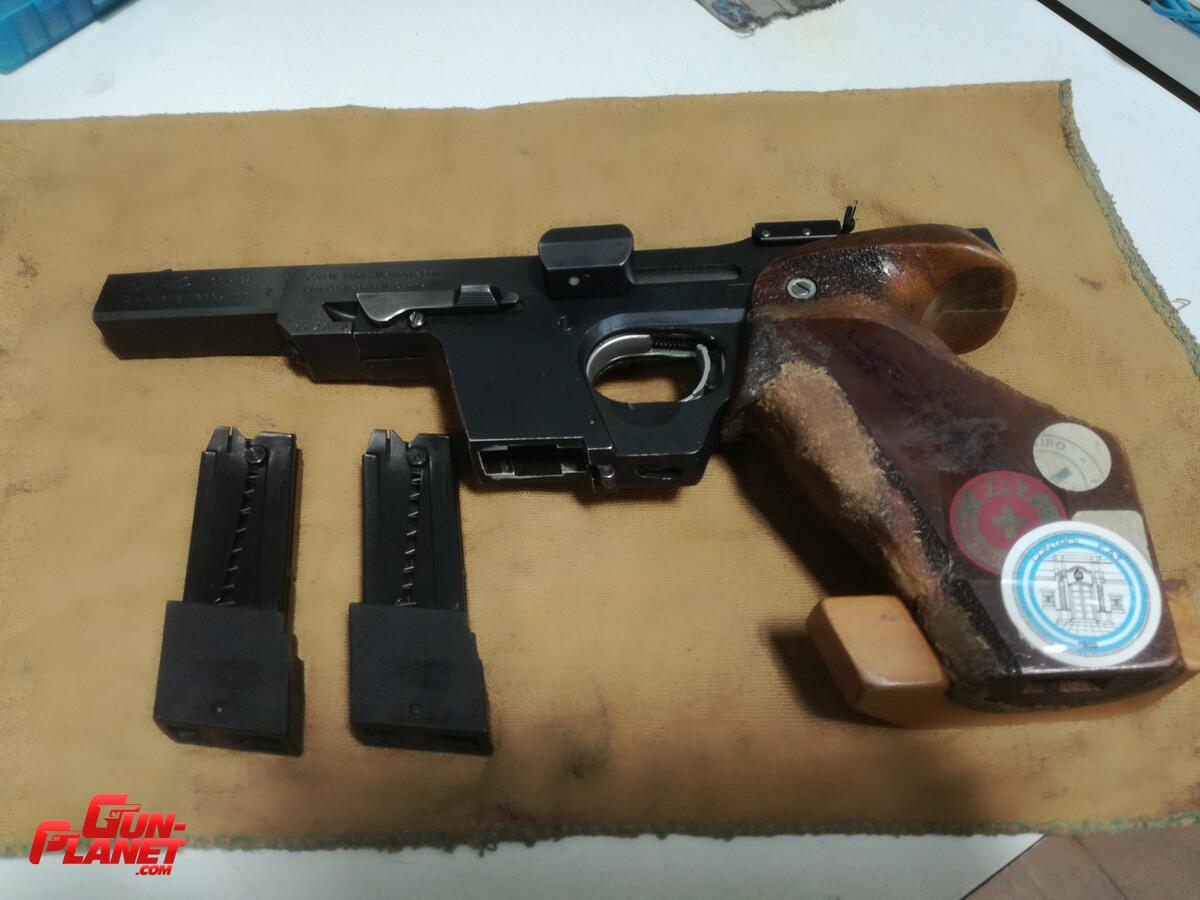Pistola de competencia calibre 32 wc y la conversion de 22 corto, ambas con dos cargadores de 5 tiros y ademas una empuñadura nueva para adaptar a la mano del tirador.