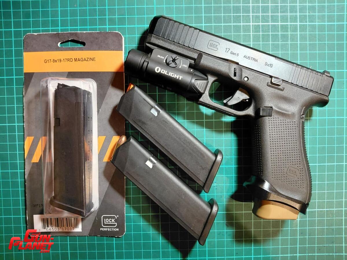 - ADICIONALES: 1 cargador Glock de G19X con extensión +2 color arena, 1 cargador Glock en caja sin abrir para G17 Gen4 (follower negro), linterna Olight PL-3 Valkyrie, magwell metálico, pistolera externa de Kydex mano derecha marca MV-Kydex para usar con linterna Olight PL-3 Valkyrie, pistolera externa de cuero mano derecha marca Zafra, pistolera interna plástica mano derecha marca Houston, llave para desarmar cargadores Glock y llave hexagonal para cambio de guión en Glock.