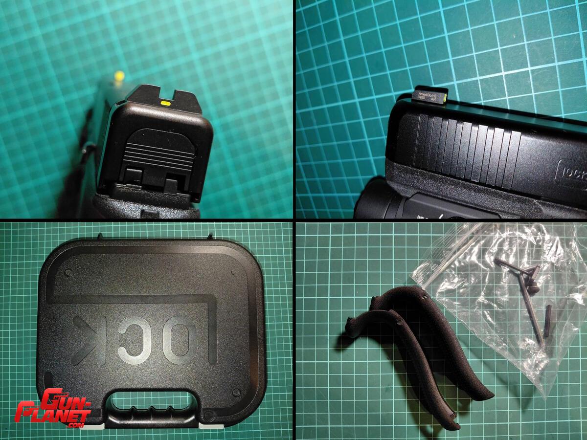 - ACCESORIOS: Gatillo Glock Performance Trigger para Gen5, miras metálicas Ameriglo CAP Sight GL-5614 con Tritium en guión, 2 cargadores originales de 17 cartuchos, caja original, miras plásticas originales (alza y guión) y gatillo original.