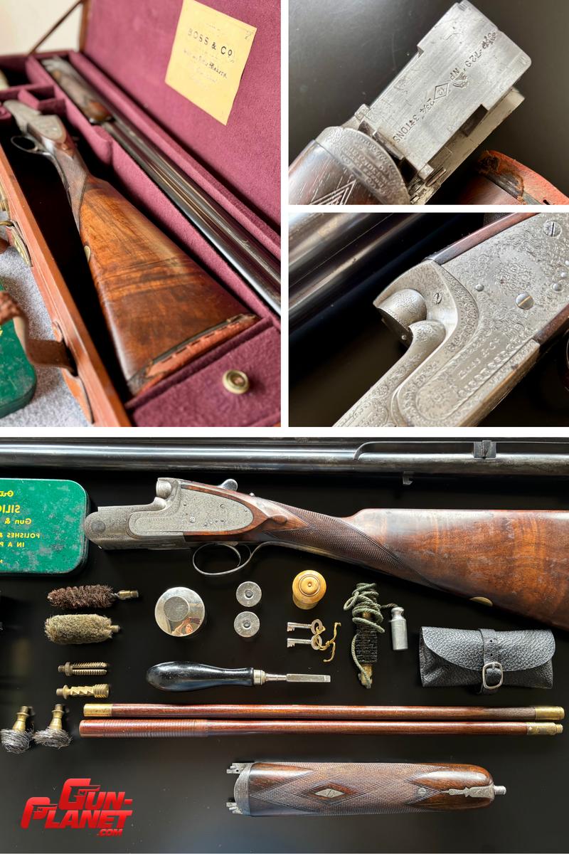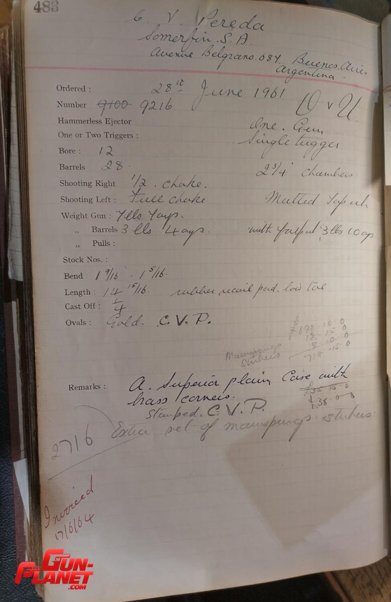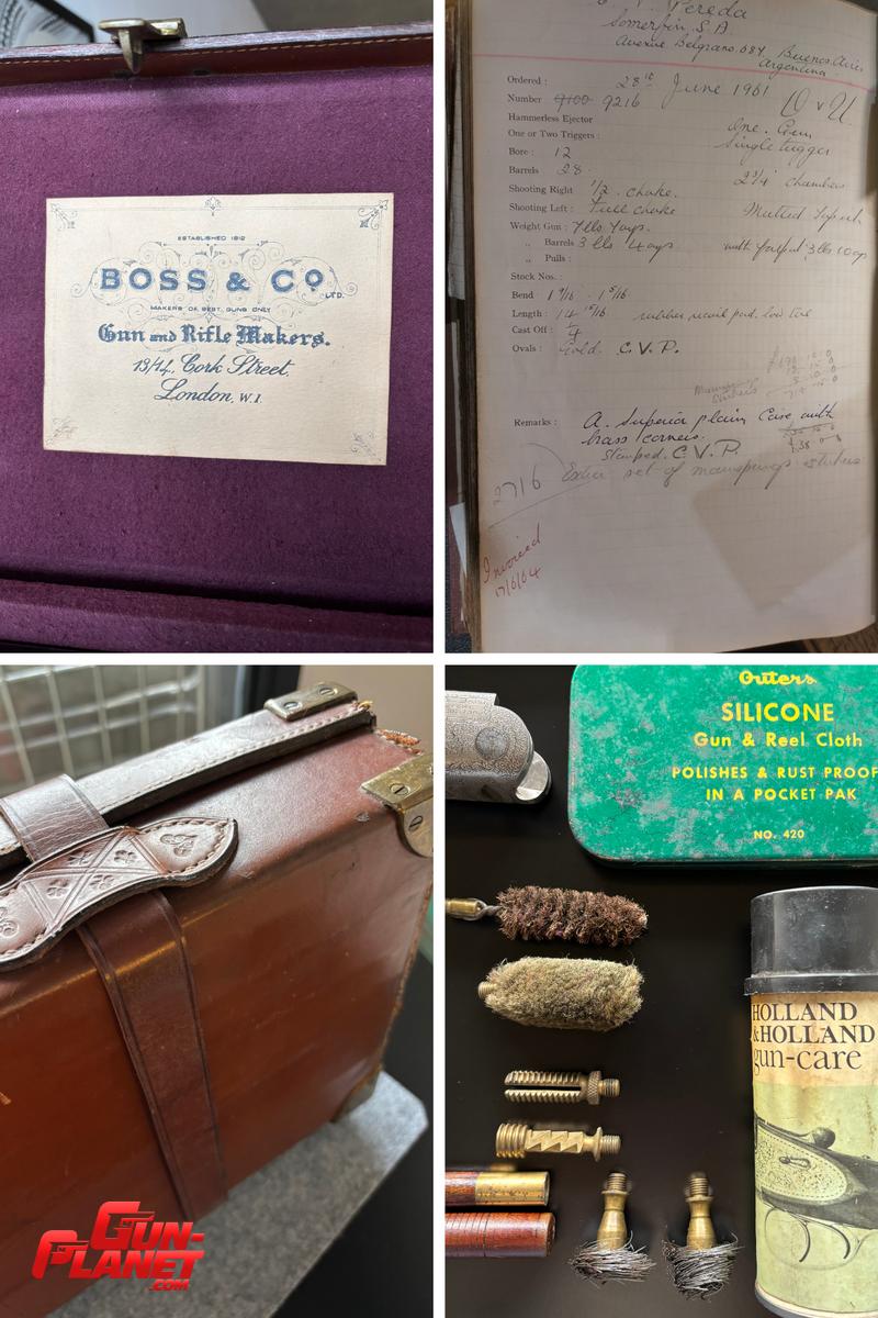 Escopeta superpuesta Boss & Co. N.° 9216 Calibre 12/70 - c. 1961 - Buenos Aires, consignada en el libro de fábrica de Boss & Co. el 28 de junio de 1961. Construida como una escopeta superpuesta de calibre 12, de percusión interna y con expulsión automática, con monogatillo, recámaras de 2¾ pulgadas y caños de 28 pulgadas, con estrangulamiento ½ en el superior y completo en el inferior. Ficha técnica