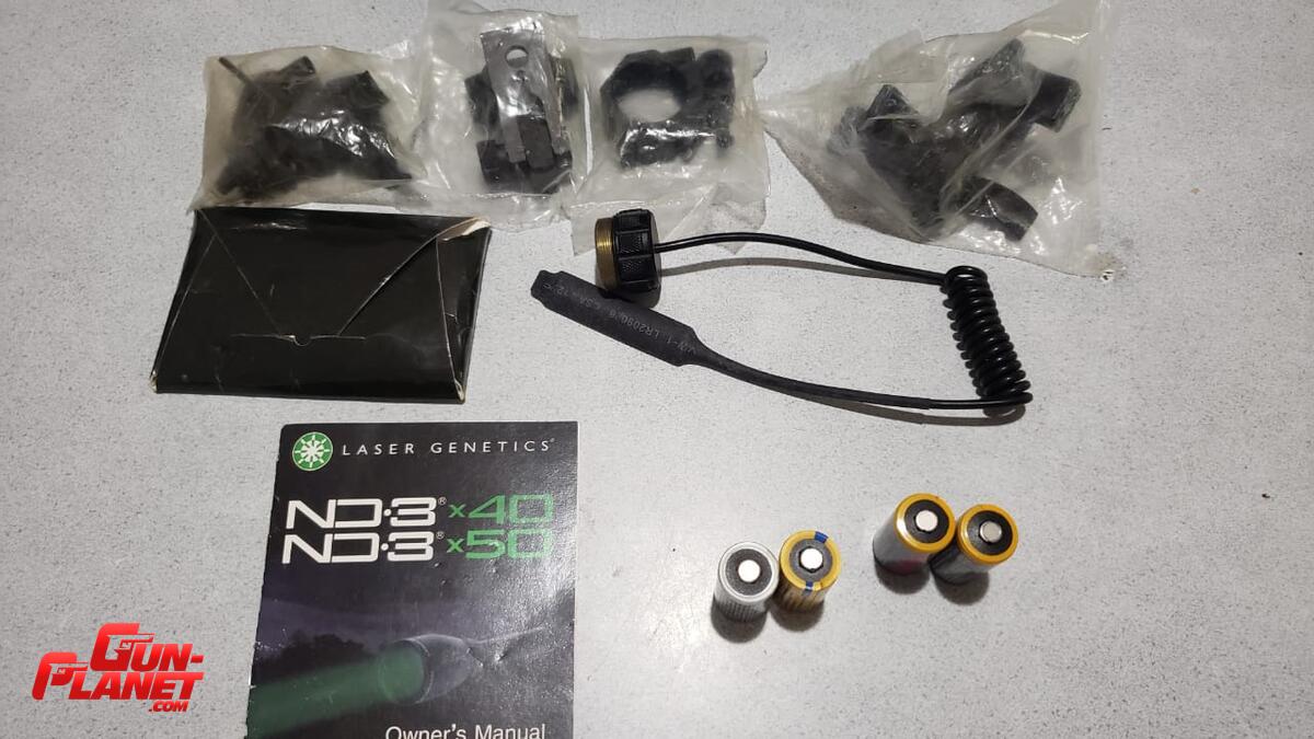 Linterna Laser Genetics ND3X50, verde En caja, estuche, montaje y suitch remoto impecable estado. Para cacería Nocturna