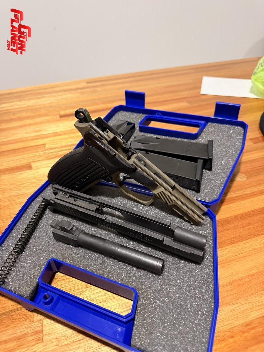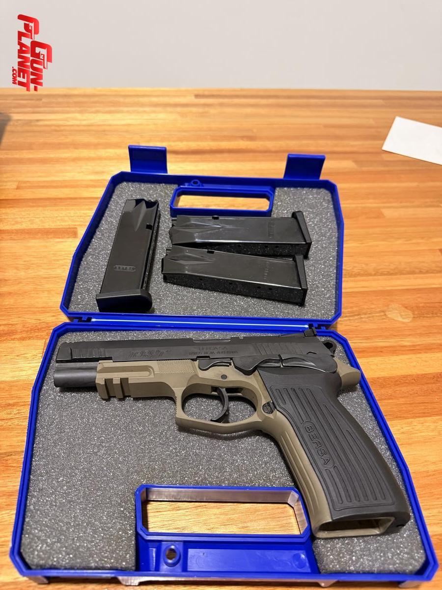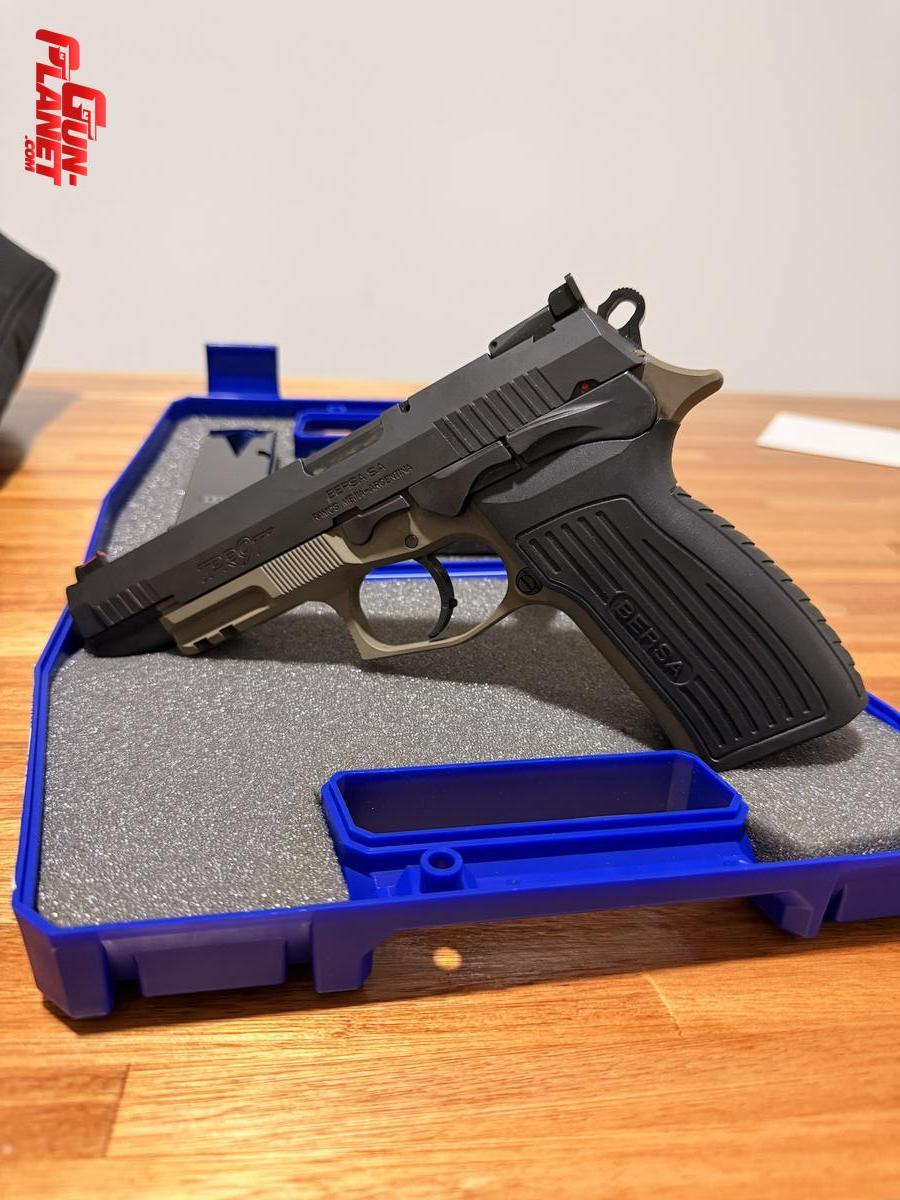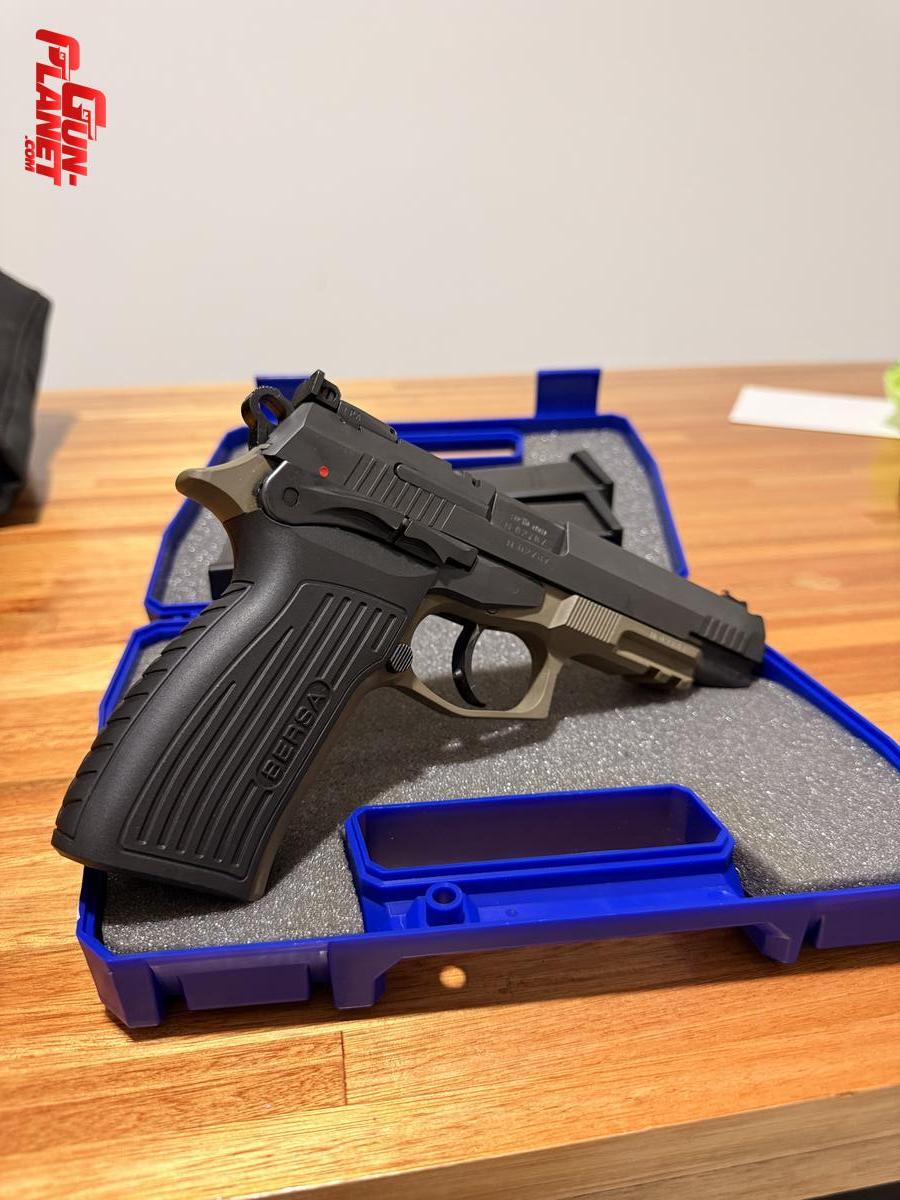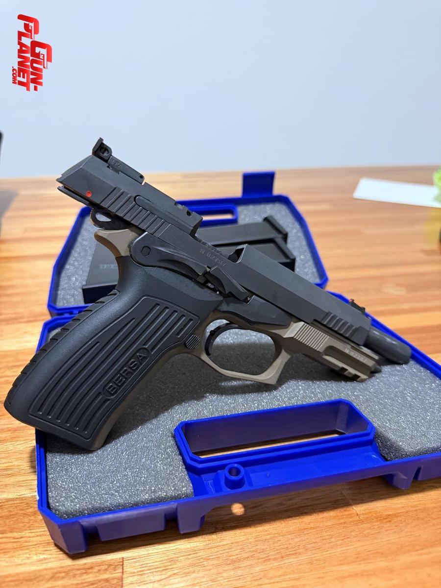 BERSA TPR9 T como nueva con 3 cargadores, viene de fábrica con mira LPA y guion de fibra. También incluye kit alivianado original de bersa, dos porta cargadores, funda exterior para zurdo y maletín de tela de la marca bersa