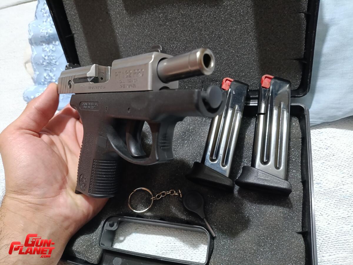 Pistola compacta con sistema de disparo de simple y doble acción mediante aguja lanzada, seguro de aleta y de aguja percutora, con capacidad de 10+1 (incluye otro cargador extra de 10, maletín rígido original, y también una llave de seguridad para bloquear el sistema de disparo en caso de no usar).