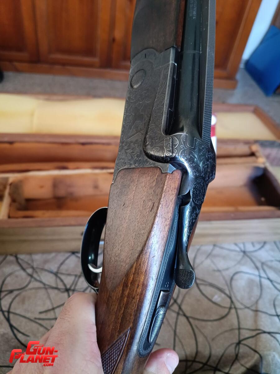 Escopeta Japonesa marca SKB modelo 500 esta fina escopeta con caño de 71 recamara 12.76 chokes fijos extractores automáticos se encuentra en exelente estado tiene maletín de transporte de época realmente impecable