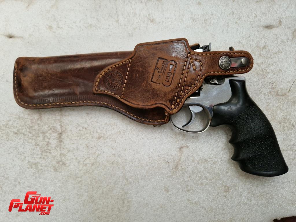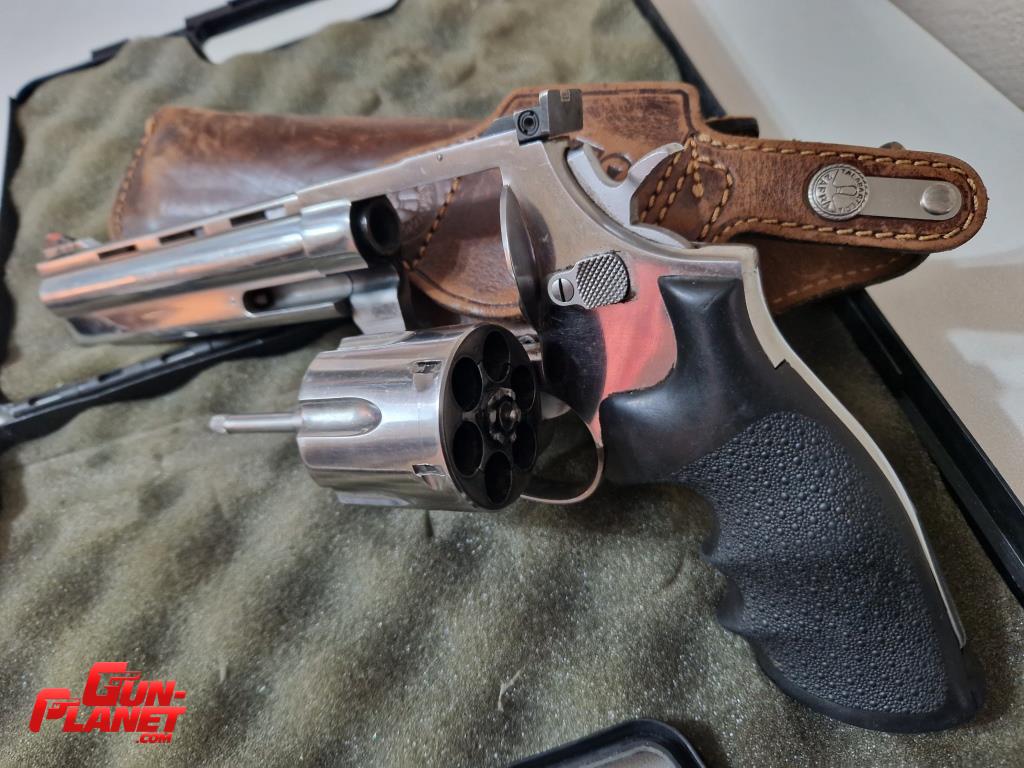 Se entrega con una HERMOSA cartuchera de cuero de Talabarteria ZAFRA. y Caja RIGIDA plastica para transporte, todo lo que esta en las fotos incluido con el revolver.