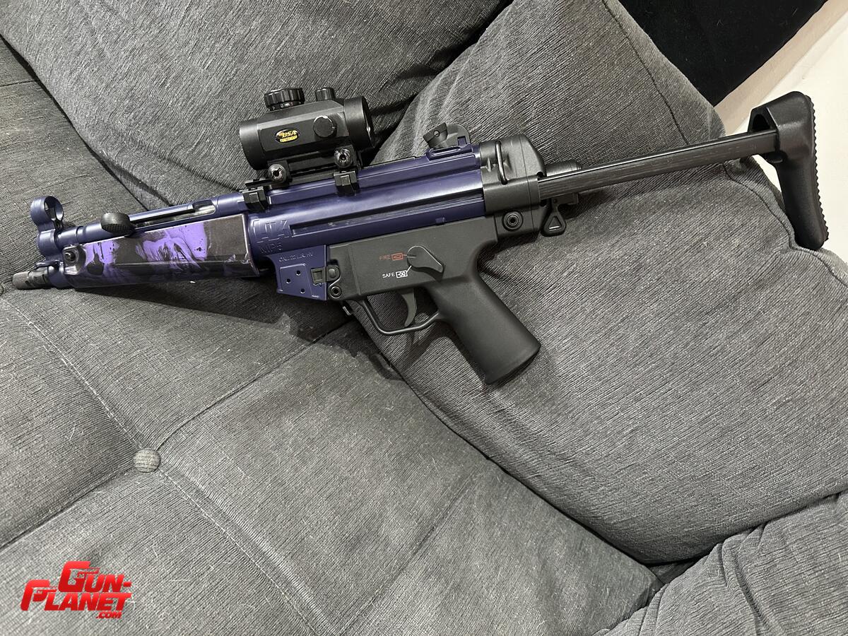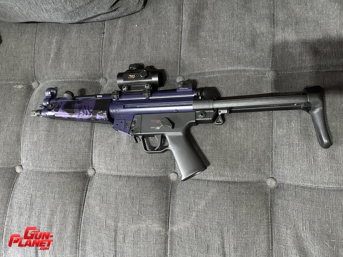 Subfusil mp5 calibre 22lr, de uso para hacer mini rifle en el tfba, esta pintado y uno de los plásticos con hidrografía estética. Se vende por falta de uso