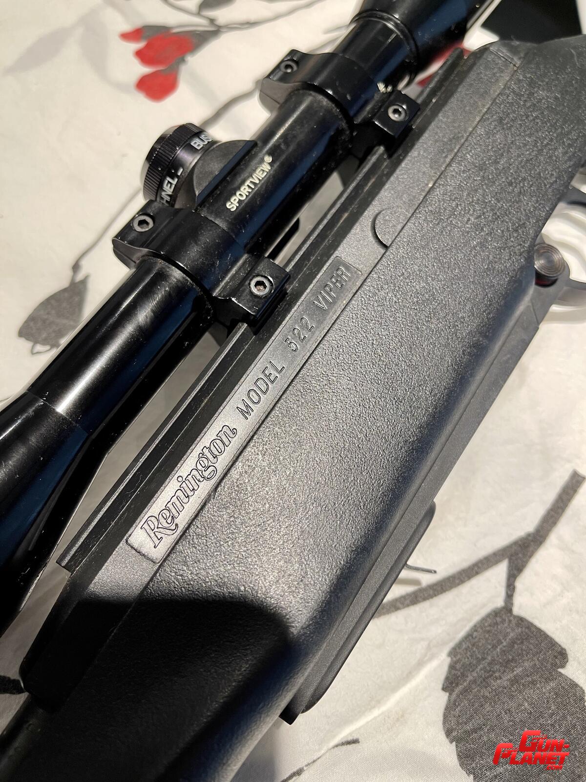 Posee 2 cargadores y viene con la mira. No posee funda.
